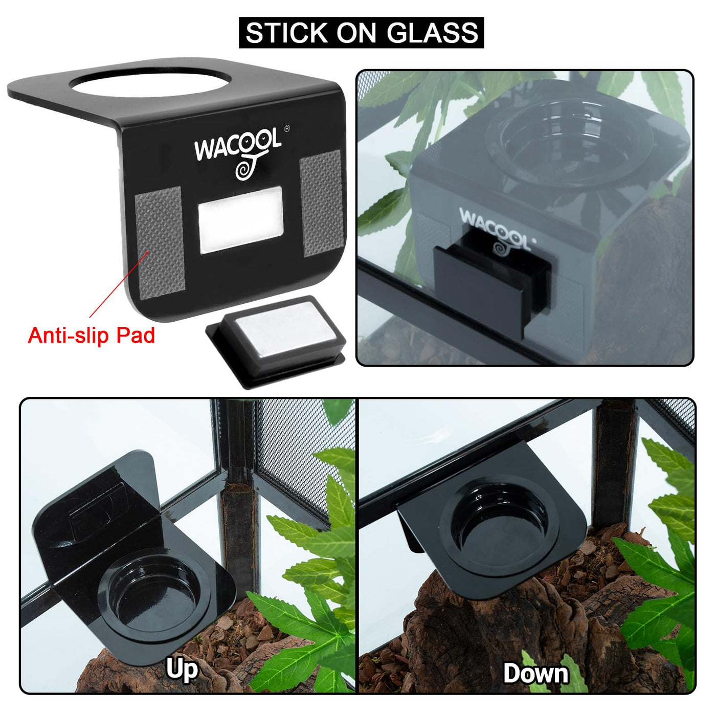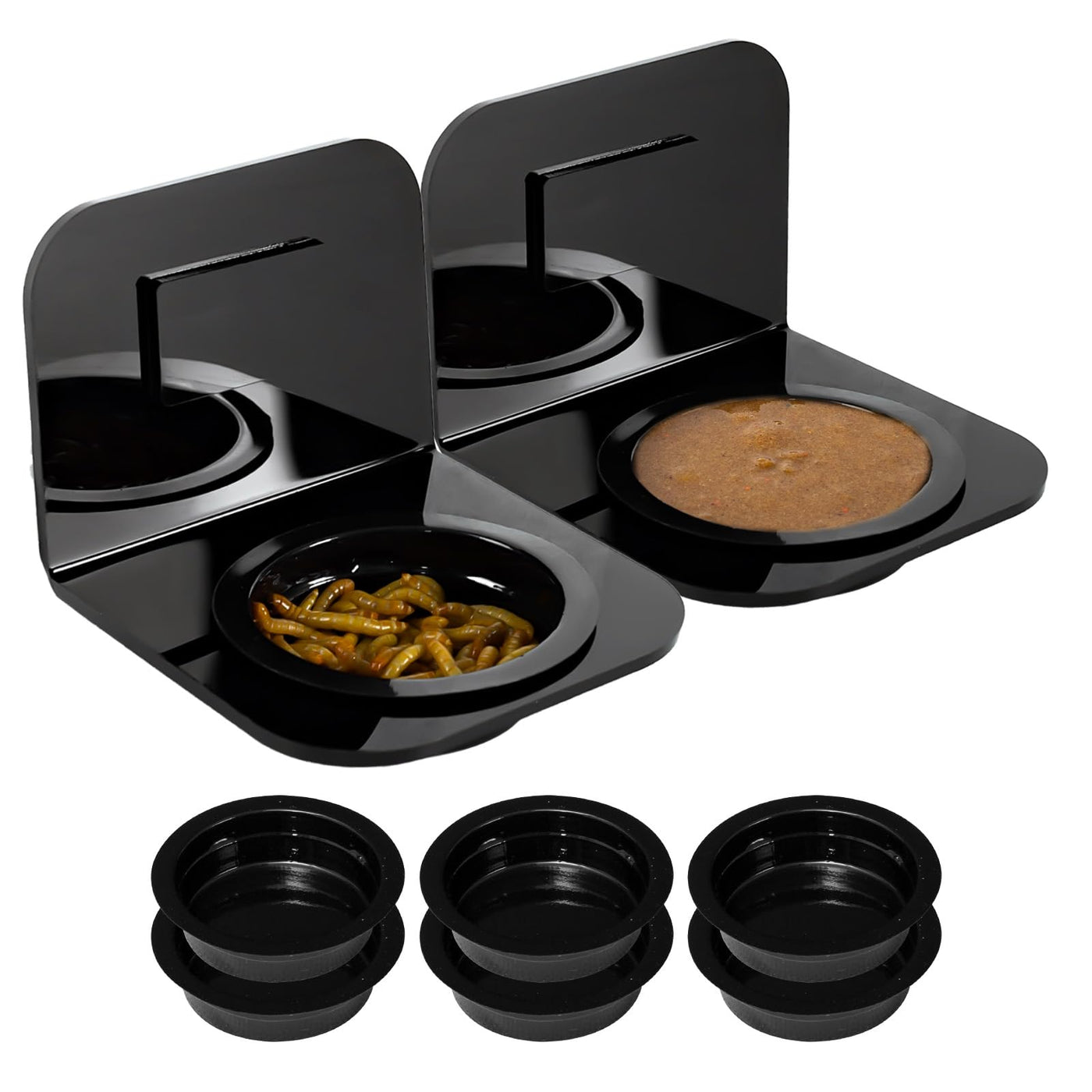 WACOOL Magnetic Reptile Ledge 2PACK, Acrylic Gecko Feeding Ledges with 6PCS Cups, Reptile Food Water Feeder Dish for Geckos Igua