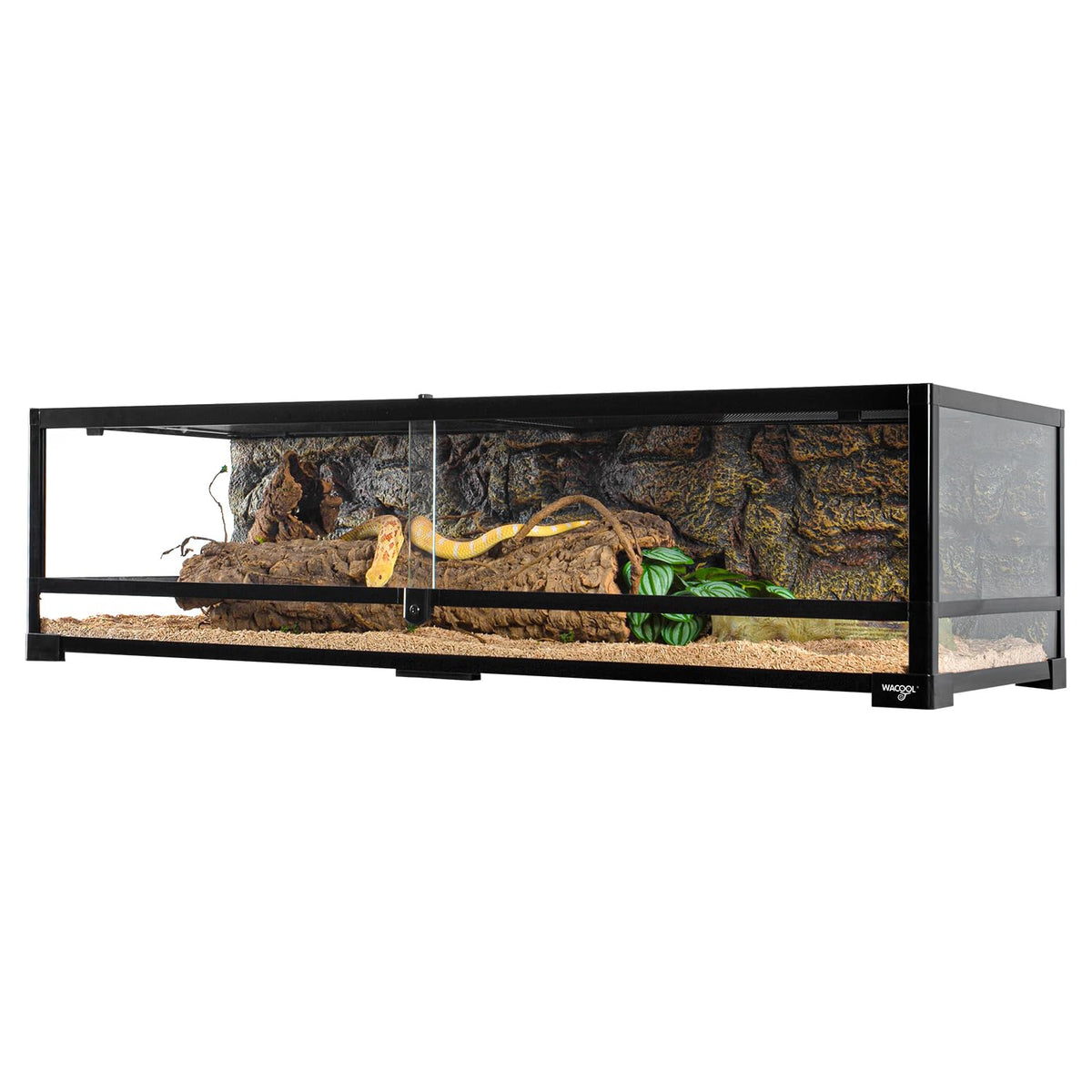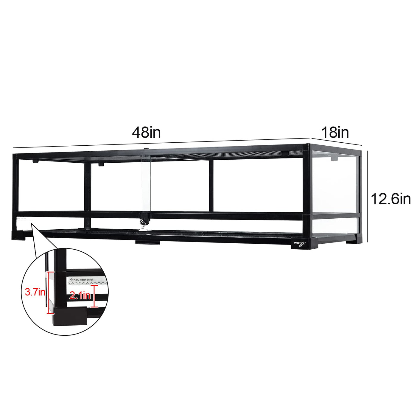 This 12 Inch Low Reptile Terrarium Is Designed For Snake And Tortoise Use. Made Of Full Glass For Full 360 Degree View And Easy Interactive. The 48 In Long Side And 18 In Deep Made It Have Full Space For Big Snakes. And The Anti-Escape Lock Protect It From Escaping. It Is Used For Feeding Snakes And Tortoise And Also Can Be Used To Feeding Baby Geckos, Bearded Dragons And Some Pets Do Not Like To Climb High.