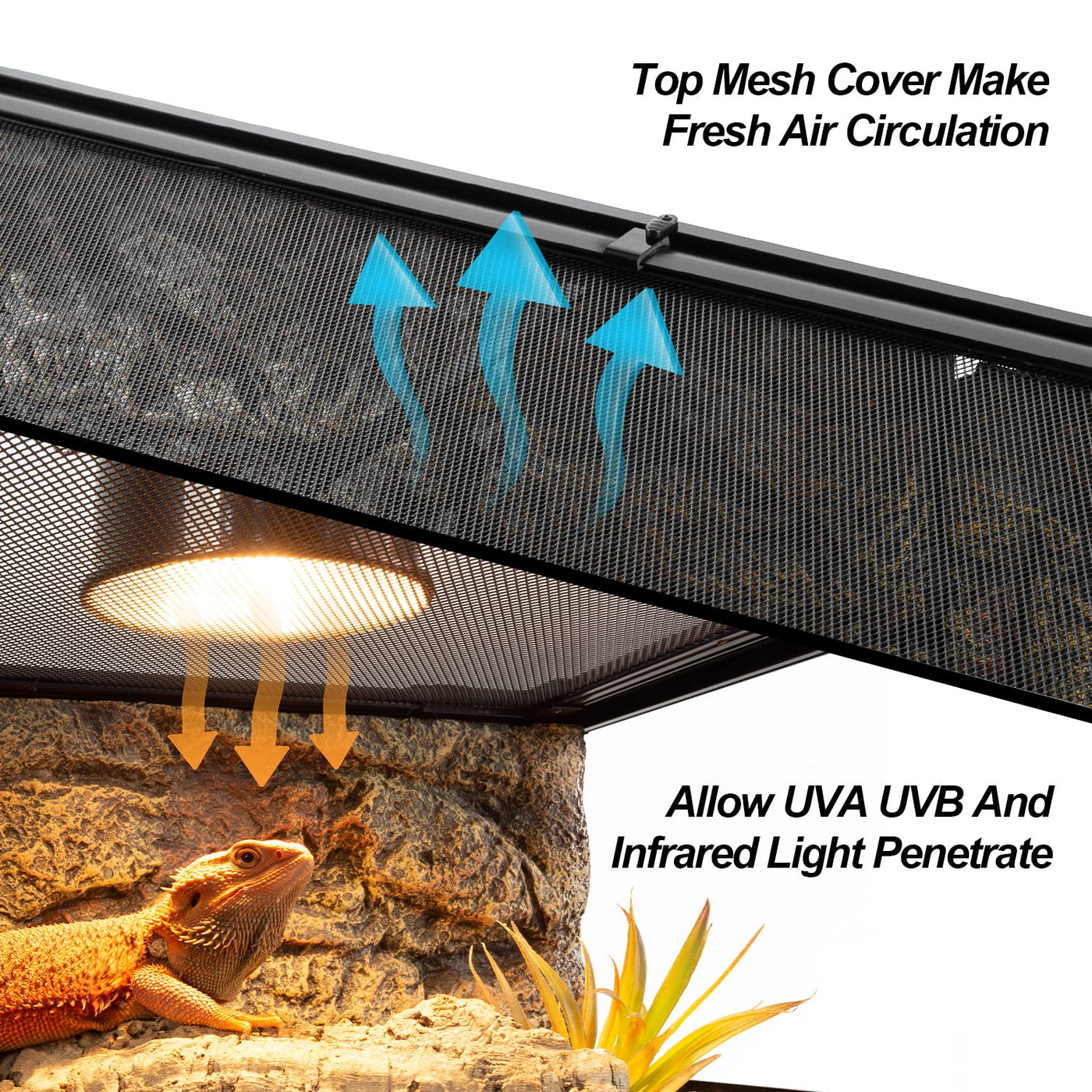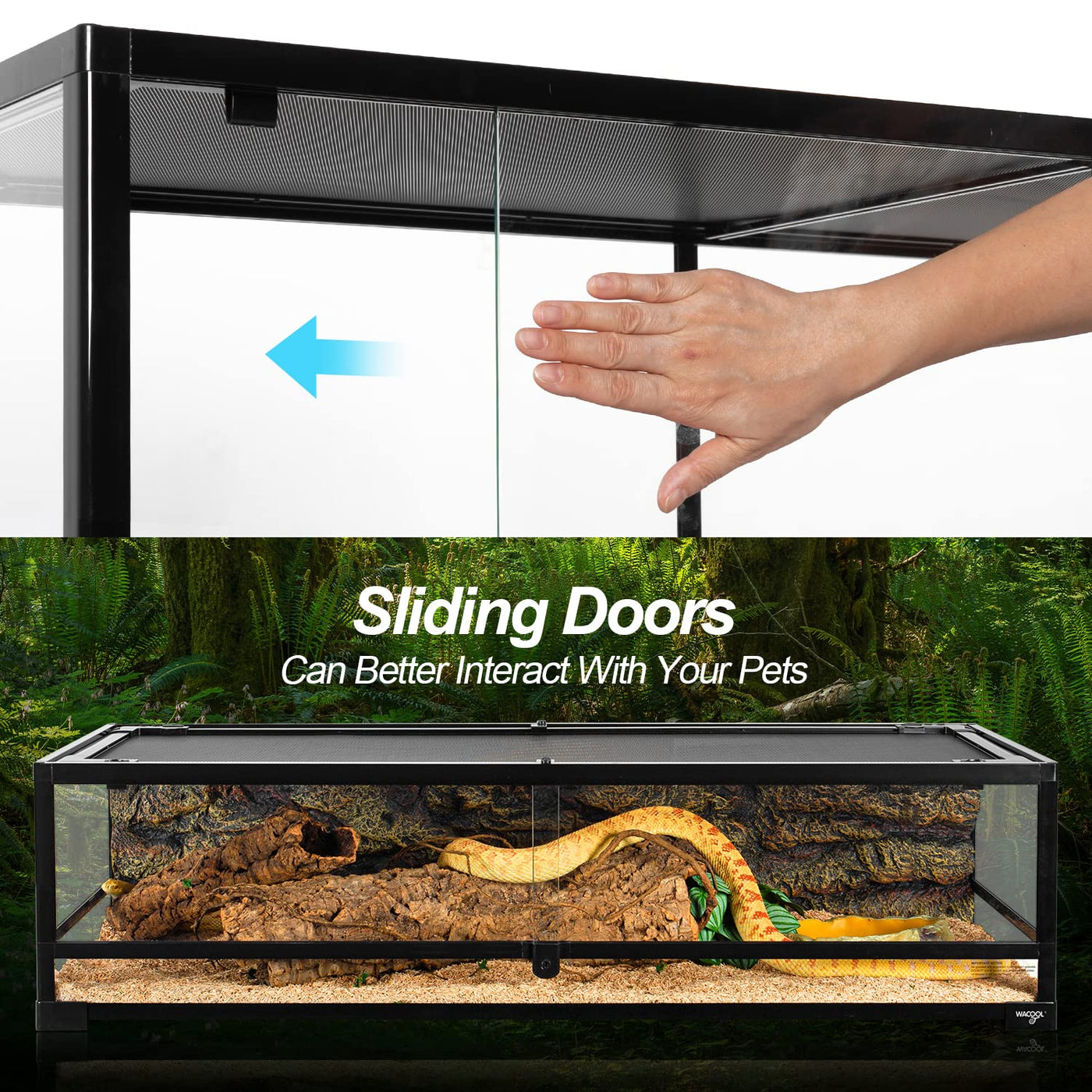 Wacool Terra Large Reptile Tank 45 Gallon, 360Full Vision Glass 48 Long & 12 Low Reptile Terrarium With Top Mesh Lid For Tort