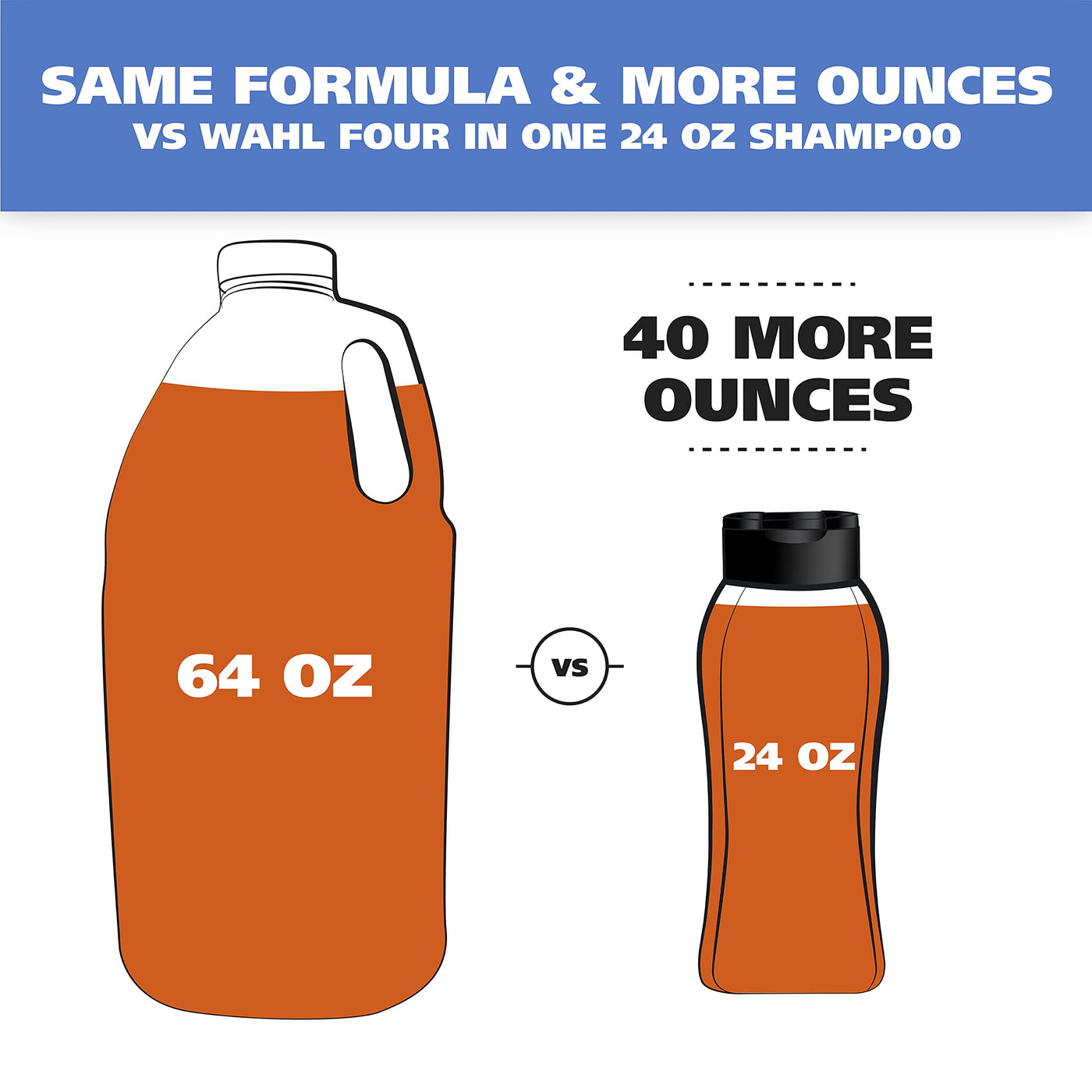 Q: How concentrated is Wahl's pet shampoo compared to other brands?A: Wahl's pet shampoo is highly concentrated, meaning you need to use less product for effective cleaning. This concentrated formula allows for up to 70% more baths than other leading brands, making it cost-effective and efficient.