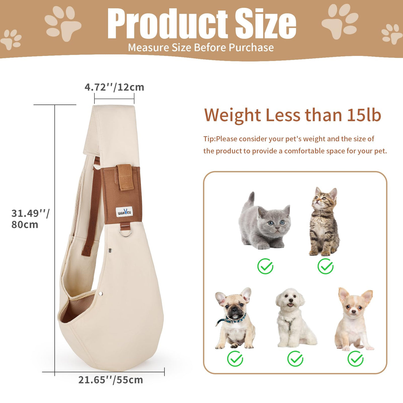 Wakytu Dog Sling Carrier For Small Dogs - Front Dog Carrier With Adjustable Strap - Hands Free Pet Papoose Bag For Chest - Suita