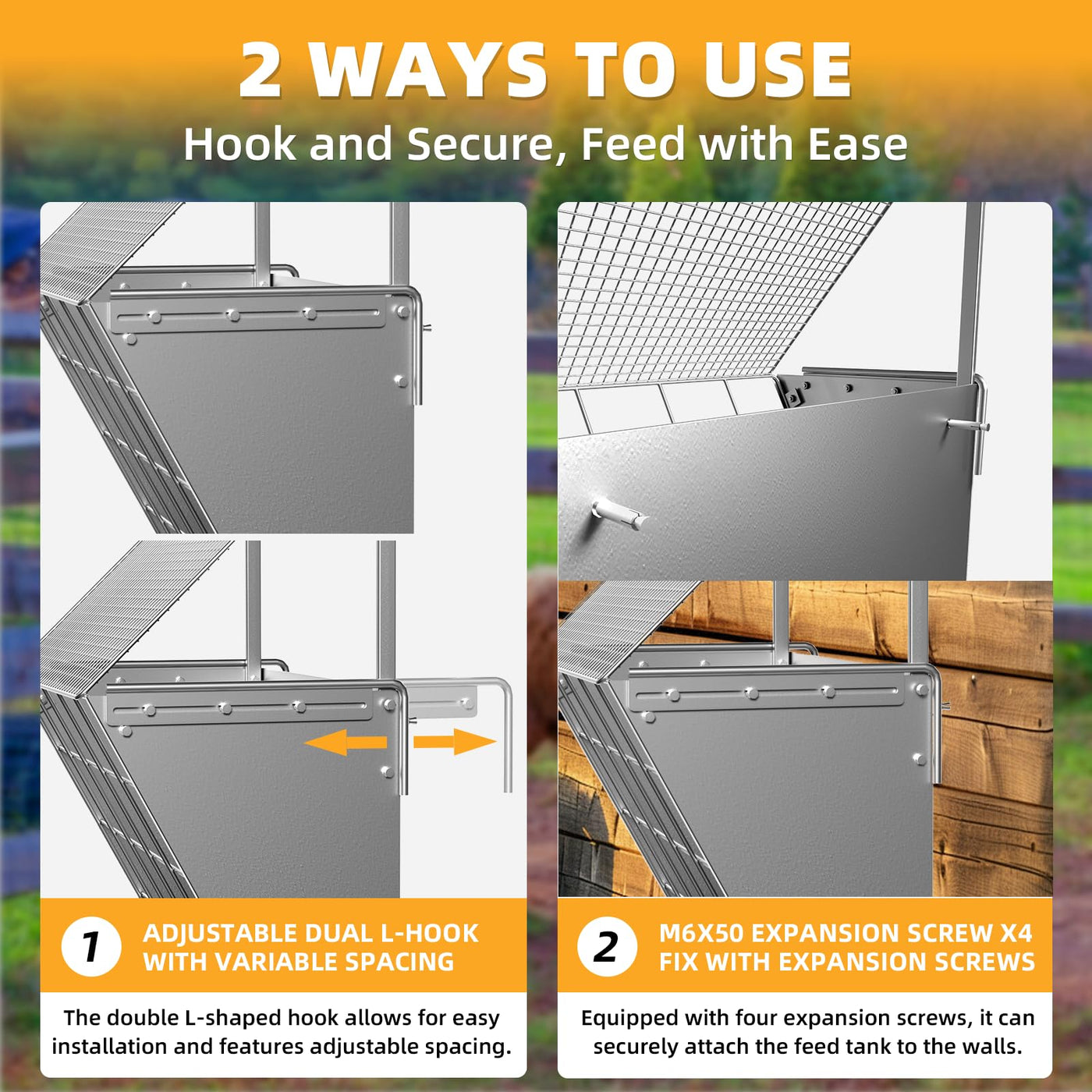 Hay Feeder Wall Mount 21.9 Gallons 2 In 1 Heavy Duty Galvanized Iron Goat Hay Rack And Grain Feeder With Hook Over Design, The Hay Feeder Is Suitable For Goats, Sheep, Horses And Other Farm Animals Feeding