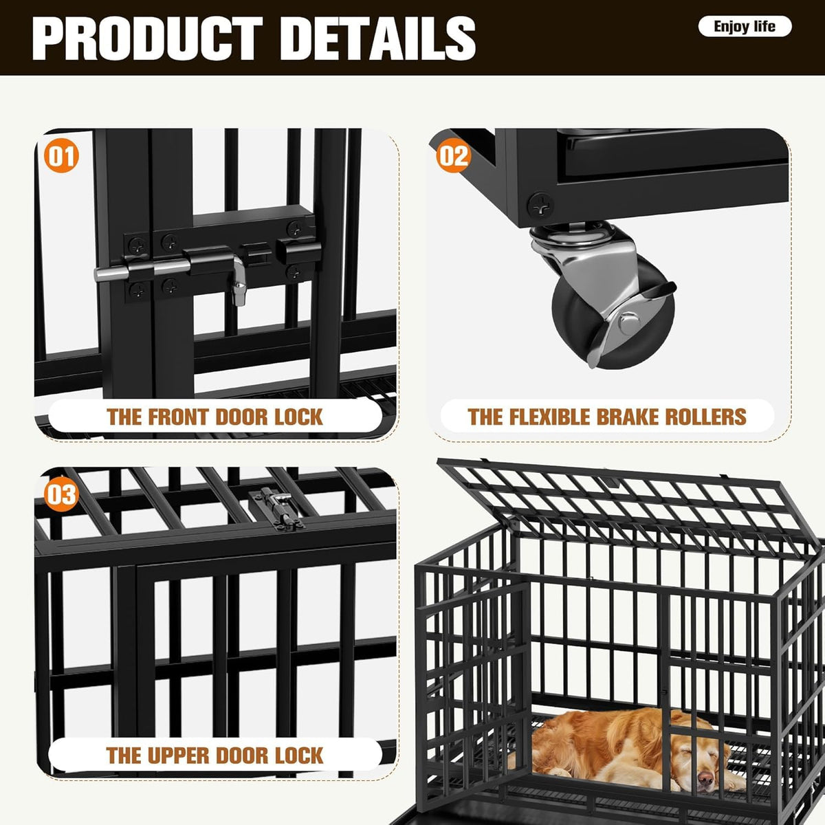 Designed For Large Dogs, This Full Iron Dog Crate Is Sturdy And Durable To Withstand All Kinds Of Activities And Damages From Your Pet. Available In Three Sizes: 48 Inch, 43 Inch, And 38 Inch, To Accommodate Different Breeds. The Top And Front Are Equipped With Locks To Ensure Your Pet'S Safety And Prevent Them From Escaping. The Bottom Is Designed With A Removable Tray For Easy Cleaning And Sanitizing. Equipped With Four Plastic Wheels, Two Of Them With Brakes, Easy To Move And Fix. Ventilated And Breathable, Providing A Safe And Comfortable Environment For Your Pet. Features: Full Iron Construction For Safety And Reliability Removable Tray For Quick And Easy Cleaning & Sanitizing. Top And Front Locks To Prevent Escape And Ensure Pet Security Fine Wire Mesh Design Allows For Good Air Circulation Equipped With Four Plastic Wheels, Two With Brakes For Stability Specifications: Color: Black Material: Metal Application: Indoor, Outdoor