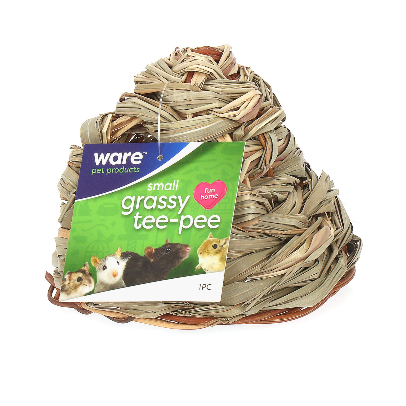 Q: What animals can use the Ware Farmers Market Small Animal Grassy Tee Pee?A: The Ware Farmers Market Small Animal Grassy Tee Pee is ideal for small animals such as guinea pigs, hamsters, and other small pets. Its cozy design provides a perfect hideaway for your furry friends.