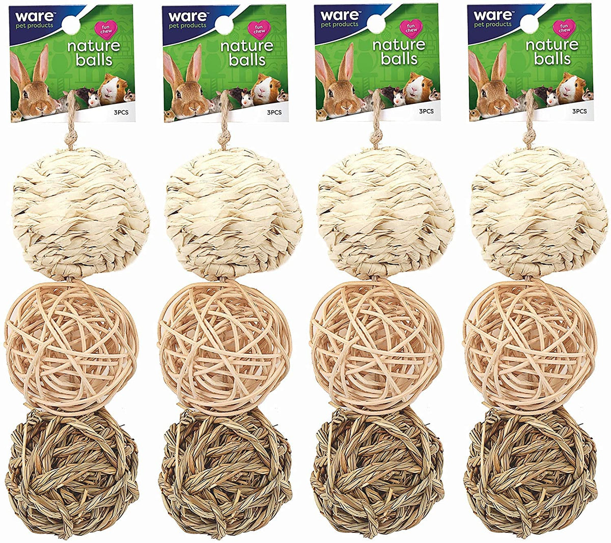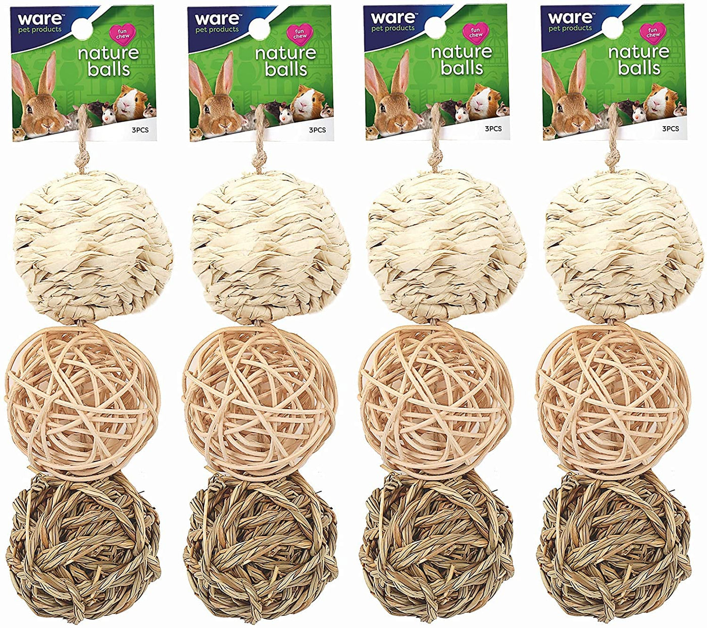 Ware Manufacturing's 12-Pack of Nature Balls are a fun toy that your small pets will love to chew and roll around. Made of durable, all natural sisal, cornhusk and seagrass pets are drawn to play which promotes an active, healthy and happy pet. Funtime Bell is in the middle of the ball, so when your pets play it will ring stimulating them to play longer. Made of all natural sisal that is completely safe for your animal. Comes in a pack of Three. Measures 3-1/2' Width X 3-1/2' Depth X 3-1/2' Height