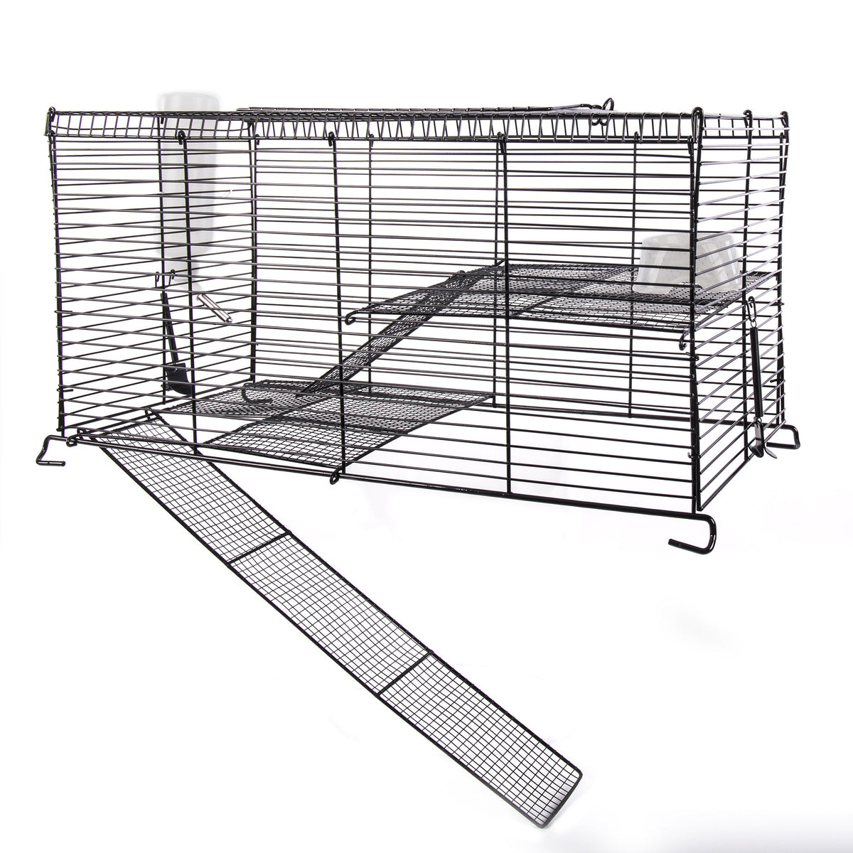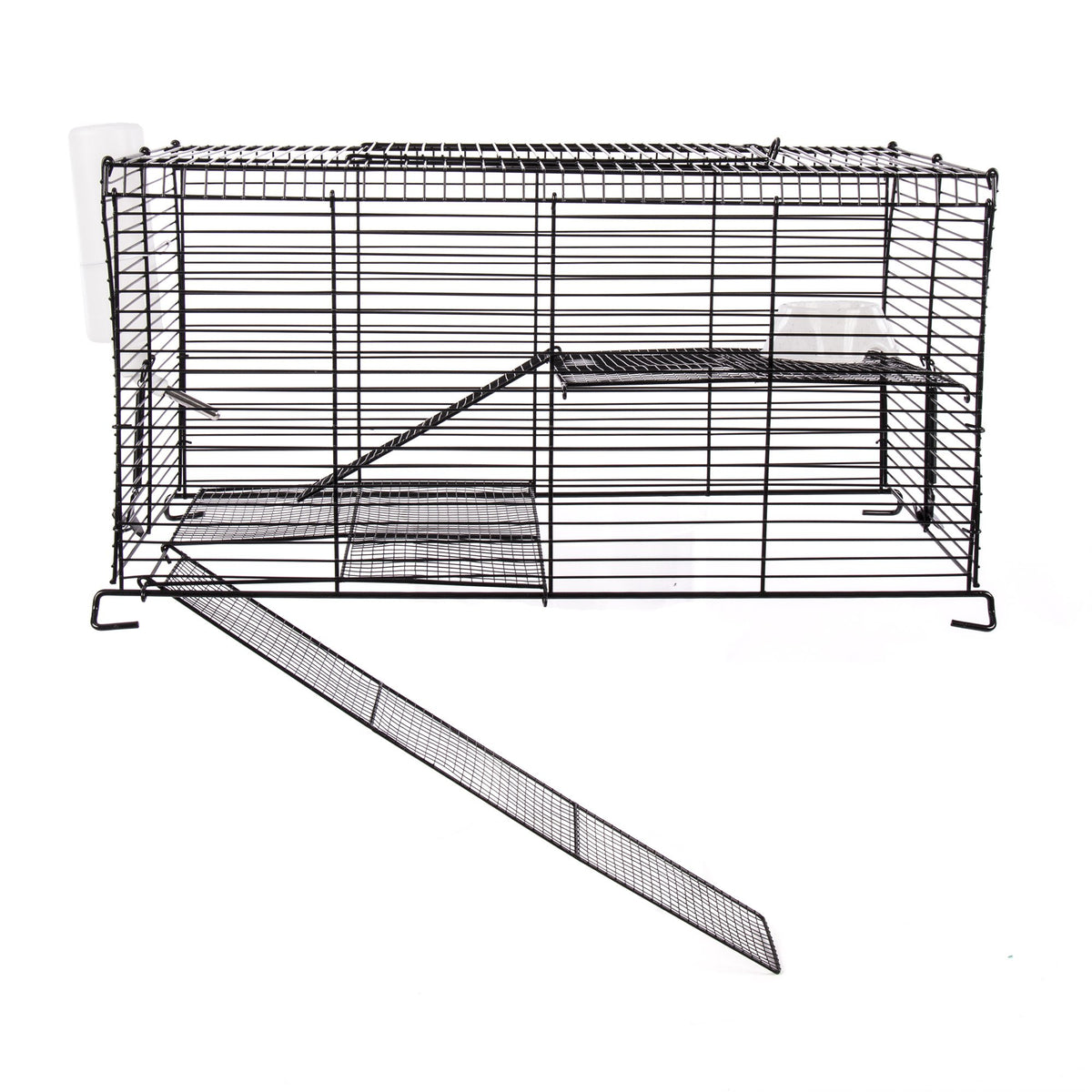 Q: Is the material of the cage safe for my pet?A: Yes, the cage is made from durable powder-coated wire that is chew-proof and safe for your pets. The materials used are designed to ensure your pet's safety while allowing for a comfortable living environment.