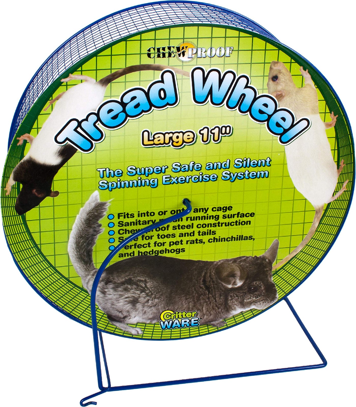 Ware Manufacturing's Large Sized Metal Pet Tread Exercise Wheel is a great toy for providing your pet a way to exercise and play. This exercise wheel is durable, made out of chew proof powder coated metal wire that is built to last. This exercise wheel is completely safe for your pets, the pet tread protects your pets tails and feet. Your animals will love to run in this exercise wheel which is great for promoting play and leads to a long, happy and active life. Measures 10-3/4' Width X 7' Depth X 12-1/2' Height.