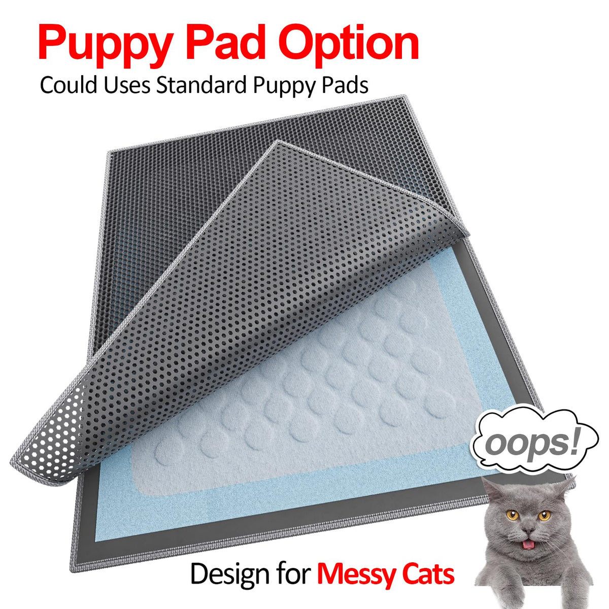 ?Premium Material & Super Large Size? - This 47''X 36'' Ez Open Design Xl Cat Litter Mat Is Made Of Premium Eva Material, Not Cheap Foam-Soft And Safe For Kittys Paws, The Double Layer Design Makes It Easy To Trap Litter And Stop Litter From Being Tracked Or Scattered Across Your Floor. ?Easy To Clean? - Ez Open Edge (One Side Connected Only) Litter Mat Is Washable Under Sink Head, Shower Head, Etc And Air Dries Quickly. Usually, You Just Lift Off The Top Layer And Dispose Of The Cat Litter Trapped In The Bottom Layer, Or Dump It Back In The Litter Box For Recycling. ?Honeycomb Top Layer? - Large Holes With A Diameter Of 10 Mm Allow Litter From Cats' Paws And Litter From Boxes To Fall Through The Next Layer Easily. No Need To Get Dirty Hands To Dump The Litter Like An Envelope-Opening Cat Litter Mat And Button-Attached Cat Litter Mat. Just Lift The Upper Layer And Clean It With A Broom. ?Waterproof Bottom Layer ? - The Waterproof Bottom Layer Not Allow Liquids To Soak Through, Preventing Your Floor From Urine And Odor. For Really Messy Cats Be Sure To Use Puppy Pads As They Soak Excessive Urine - Avoid Urine Around Nylon Mesh Located On The Perimeter Of The Mat. This Outside Nylon Border May Absorb Urine If Excessive. Please Check The Mat Oftenly For Avoiding Damage Your Floor. Say Goodbye To The Hassle! This Black Cat Litter Mat Is Not Only A Breeze To Use But Boasts An Impressive Size. Simply Put It Under Your Cat'S Litter Box, And Let The Magic Happen. As Your Feline Friend Saunters Away, Watch How Effortlessly It Snags Those Stray Litter Particles Clinging To Their Paws. It'S The Cat'S Meow Of Convenience, Keeping Your Space Clean And Cozy For Your Beloved Pet. Easy On You, Delightful For Them.