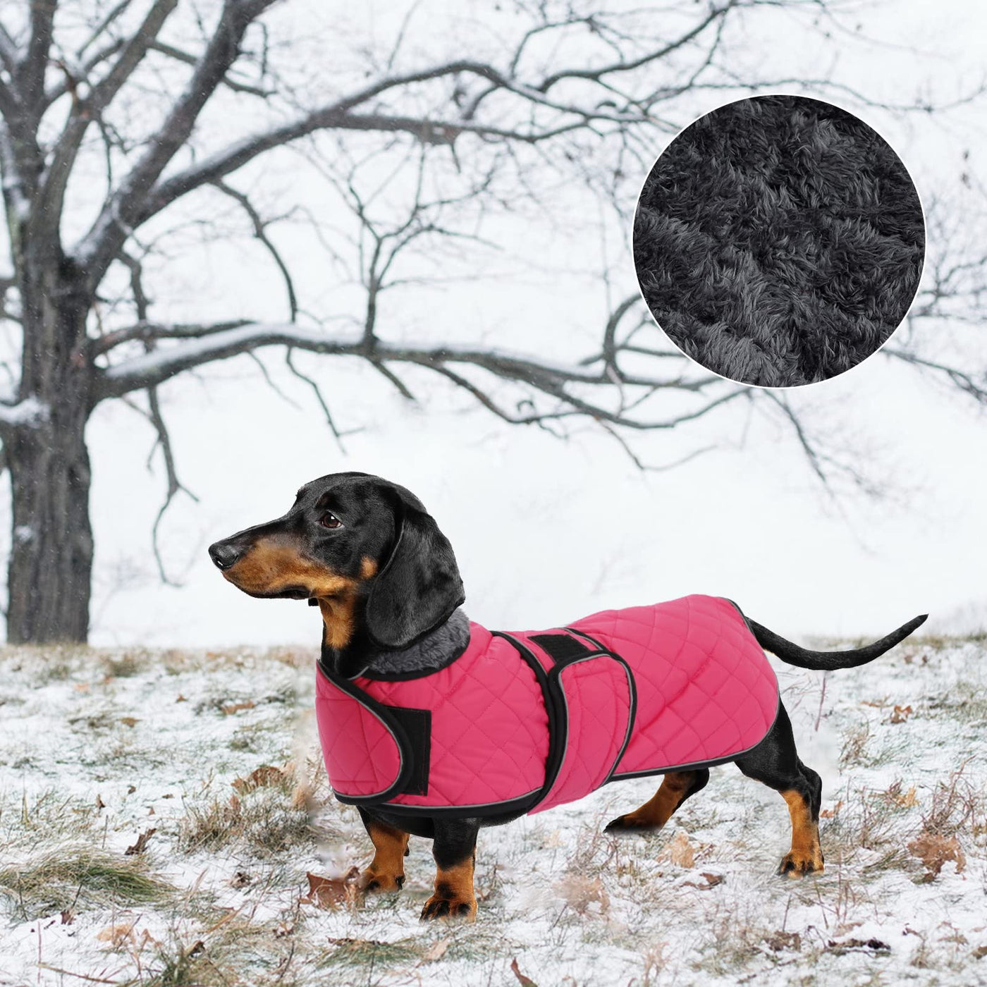 Warm Thermal Quilted Dachshund Coat, Dog Winter Coat With Warm Fleece Lining, Outdoor Dog Apparel With Adjustable Bands For Medium, Large Dog-Pink-S