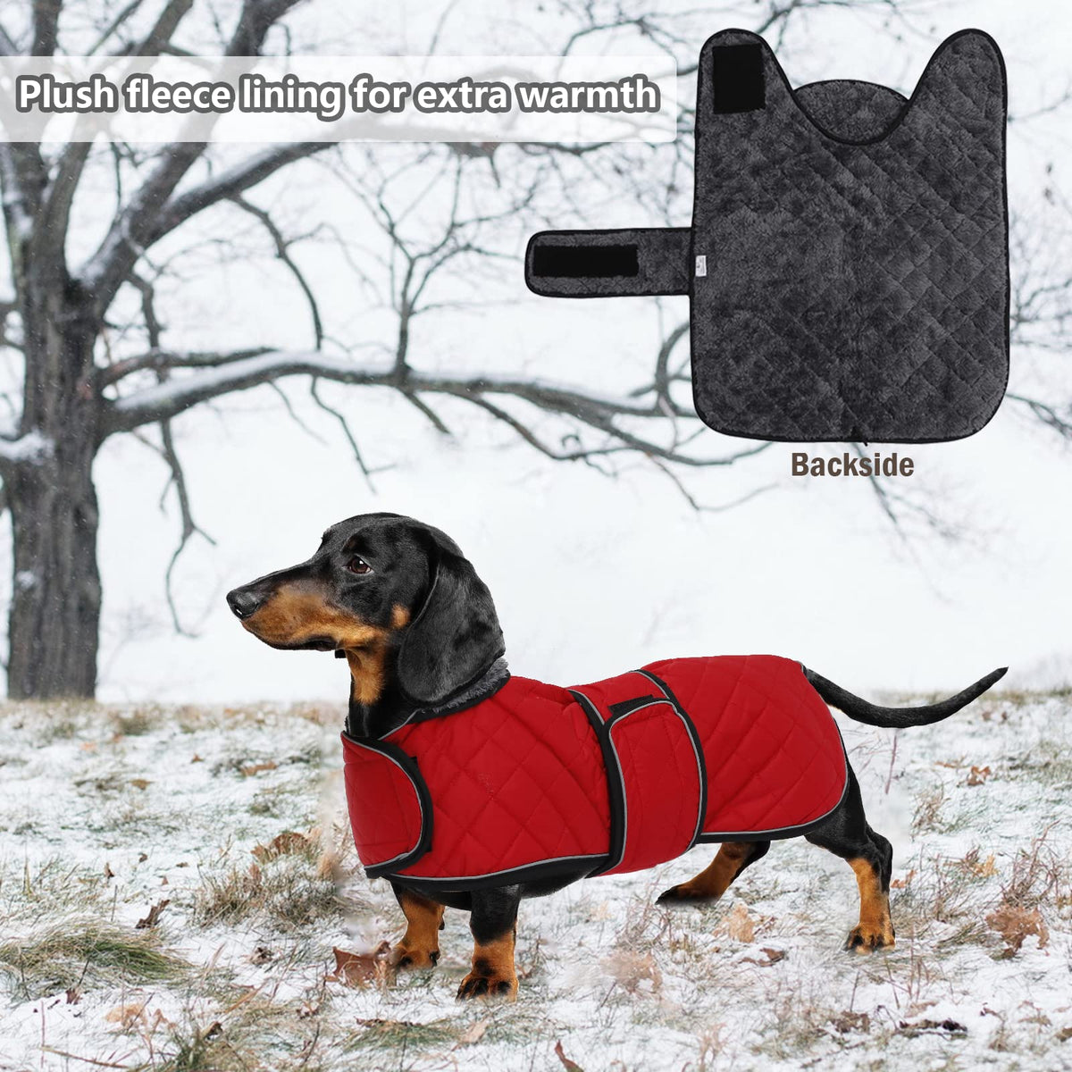 Warm Thermal Quilted Dachshund Coat, Dog Winter Coat With Warm Fleece Lining, Outdoor Dog Apparel With Adjustable Bands For Medium, Large Dog-Red-L