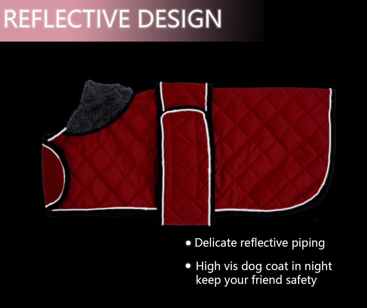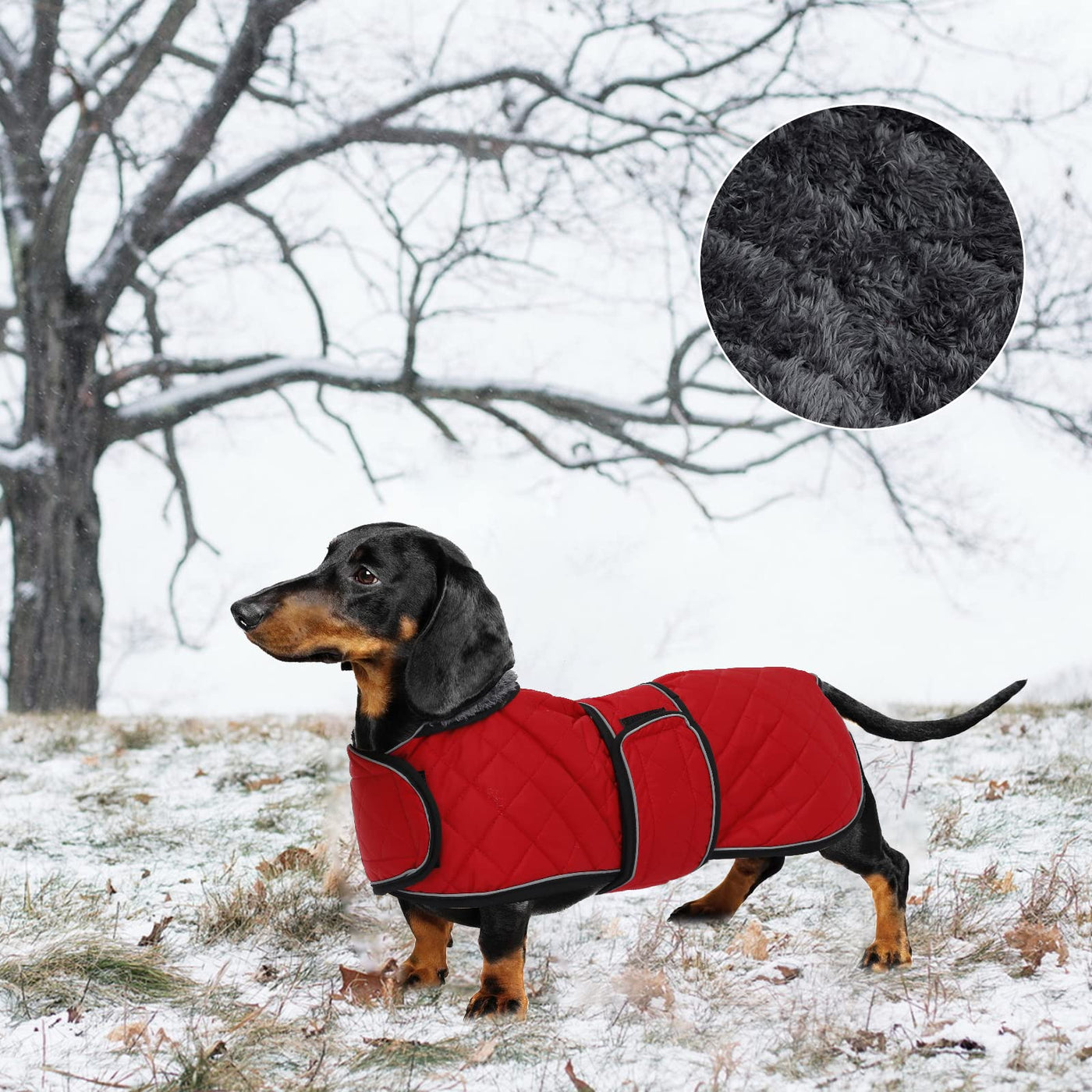 Warm Thermal Quilted Dachshund Coat, Dog Winter Coat With Warm Fleece Lining, Outdoor Dog Apparel With Adjustable Bands For Medium, Large Dog-Red-M
