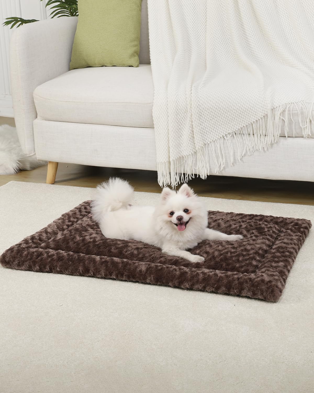Washable Dog Bed Mat Reversible Dog Crate Pad Soft Fluffy Pet Kennel Beds Dog Sleeping Mattress For Large Jumbo Medium Small Dogs, 29 X 18 Inch, Brown