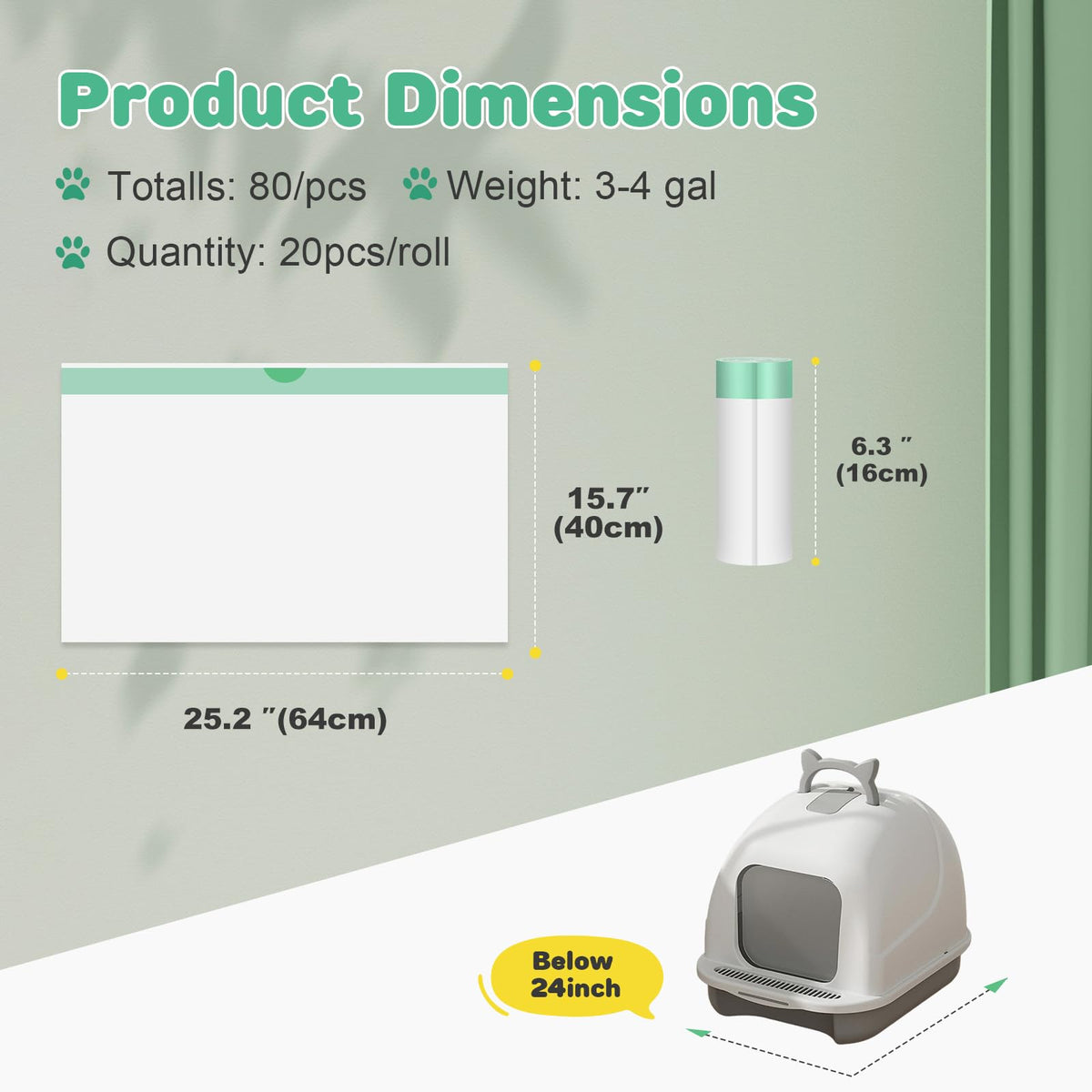 This Is A Litter Liner Bags Designed For Automatic Litter Box, Suitable For The Litter Drawer Of Robot 4, 3 And 2. Please Ensure That The Length Plus Width Of The Litter Pan Is Less Than 25 Inches.Please Check If These Waste Bags Are Suitable For Your Litter Box Before Purchase.You Will Get Rich In Quantity Of Our Package Contains 80 Count Litter Robot Bags.The Cat Litter Box Linners Sized At 25.2'' X 15.7'' And 2 Pack Elastic Band For Secure Liner With Litter Robot 4,3,2.Our Litter Robot Waste Bags Offer A Larger Capacity Of 10-12 Gallons.These Cat Litter Bags Can Hold Large Amounts Of Waste And Litter.