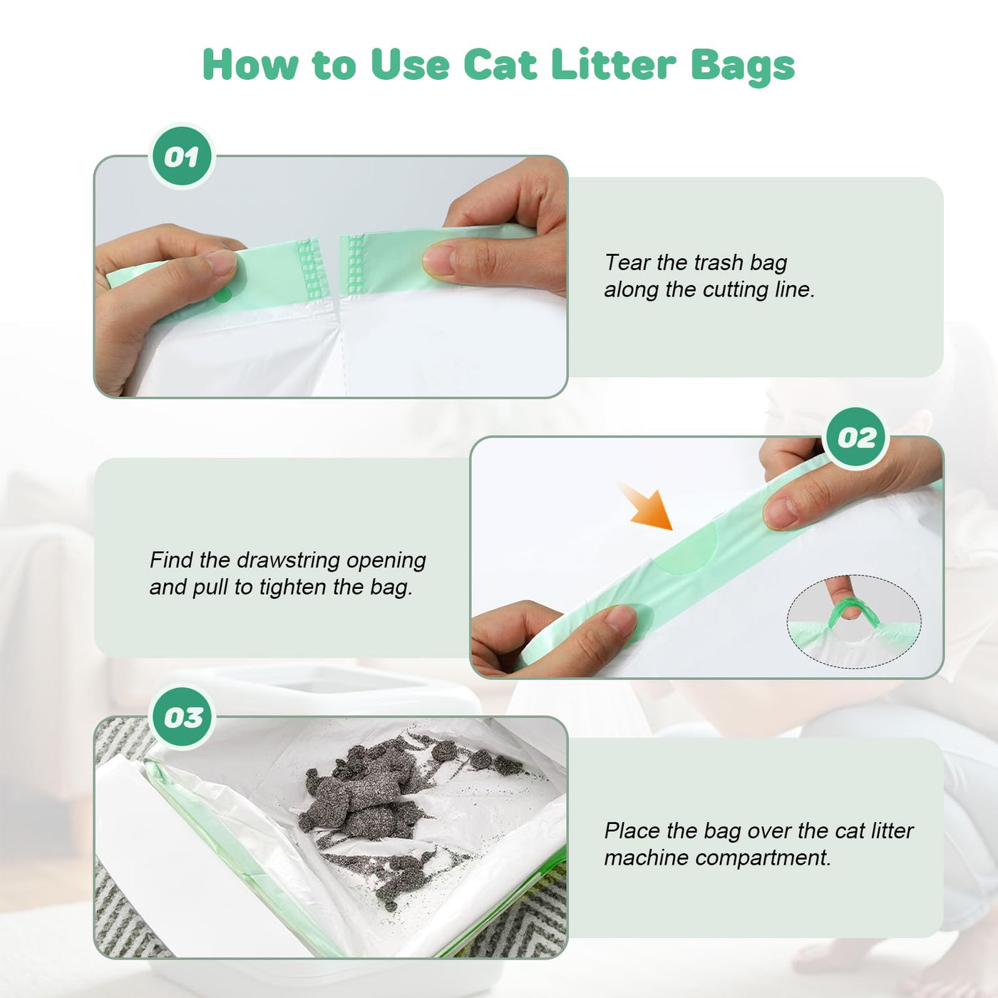 Waste Bags 80 Count Litter Box Liners, Compatible With Self-Cleaning Litter Box Tray Refills, Replacement Extra Large Drawstring