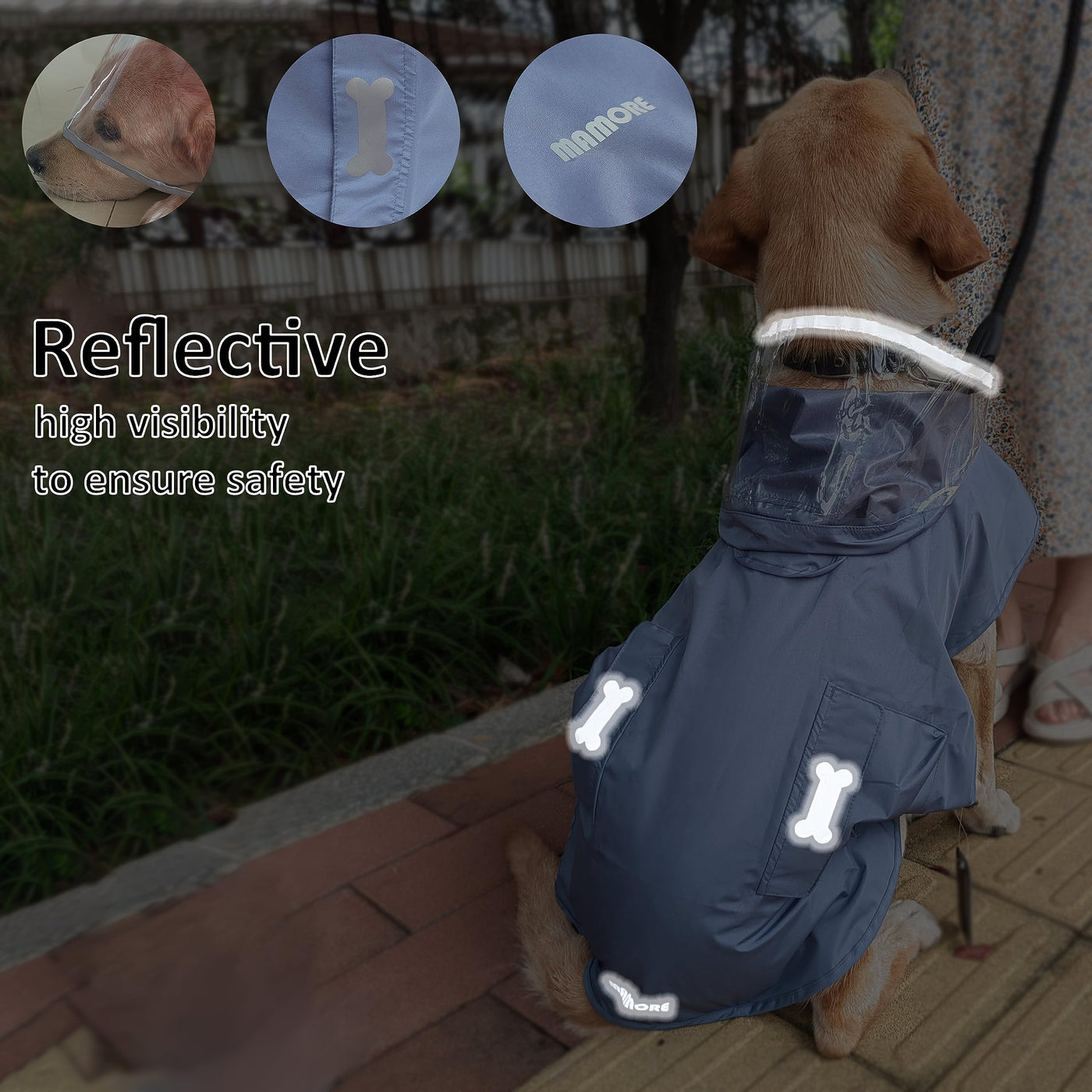 Waterproof Dog Raincoat, Adjustable Reflective Lightweight Pet Rain Clothes With Poncho Hood(Medium, Blue&Grey)