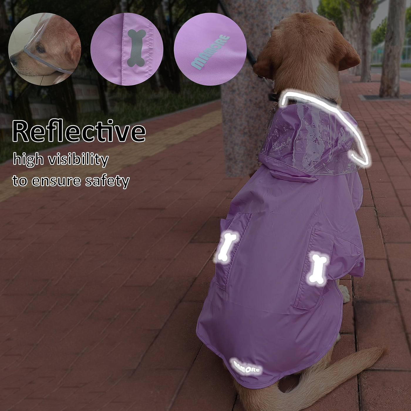 Waterproof Dog Raincoat, Adjustable Reflective Lightweight Pet Rain Clothes With Poncho Hood(X-Large, Light Purple)