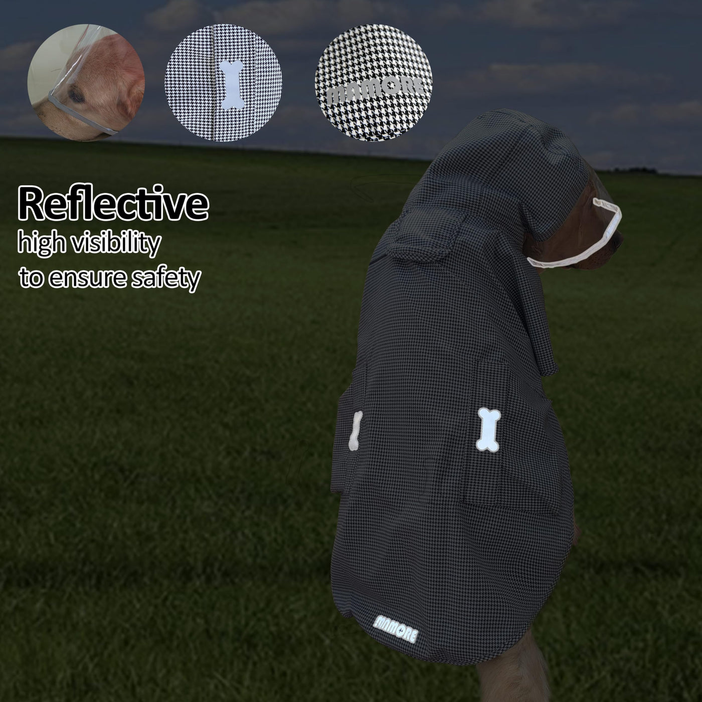 Waterproof Dog Raincoat, Adjustable Reflective Lightweight Pet Rain Clothes With Poncho Hood(X-Small,Black&White)