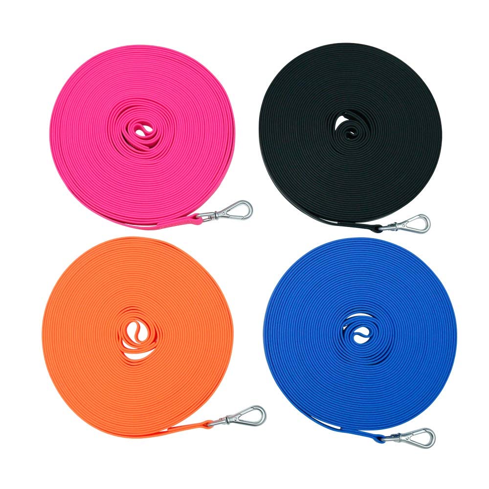 Dog Training Leash : Elevate your dogs recall skills with our dog waterproof leash Ideal for outdoor activities like hiking camping and beach play it fosters better obedience and a closer bond Weatherproof Durability : crafted from PVc coated nylon webbing our dog waterproof leash remains lightweight and strong even when wet Its weatherproof easy to clean anti-odor and perfect for all conditions Strong and Soft leash : Experience a leash thats both strong and gentle With a remarkable 600 lbs pull force resistance it offers safety and comfort in various weather conditions Adventure Ready: Designed for active outdoor moments our dog leash stands up to play training and exploration Its a reliable companion for all your escapades Multi color and size: We provide different colors to choose from width 35 inch with length 5FT 10FT 15FT 30FT 50FT Find the perfect fit for your dogs needs and your preferences