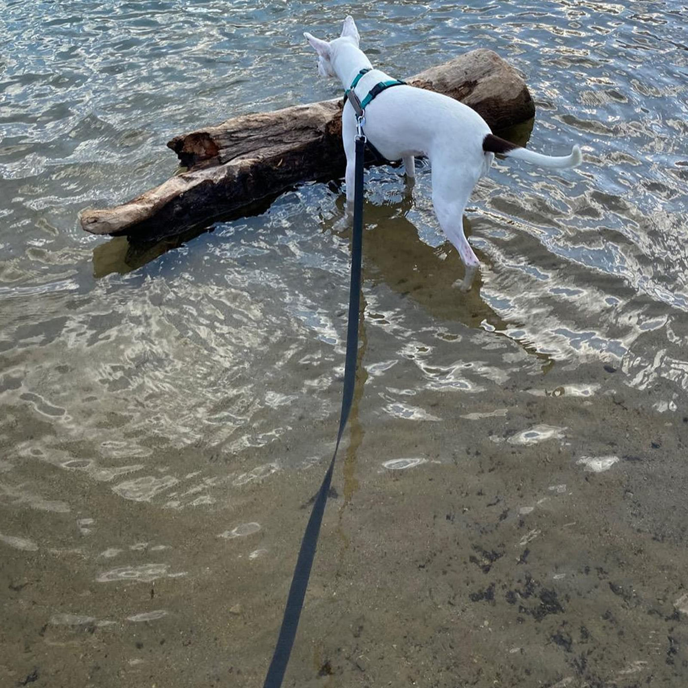2. Easy to Clean long lead, it doesn't get all wet and no smell. The material is pretty disinclined to knot, even when swirling around other dogs feet.