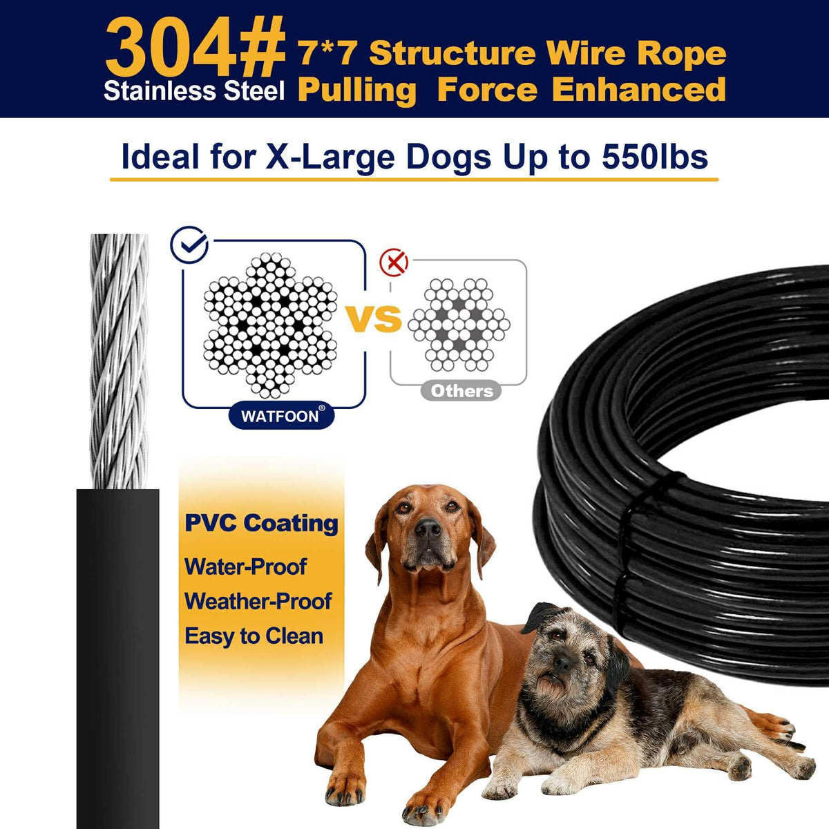 Watfoon 30Ft Dog Leads For Yard, 1500Lbs Break Strength, Heavy Duty Tie Out Cable For X-Large Dogs Training With Dual Rotating H