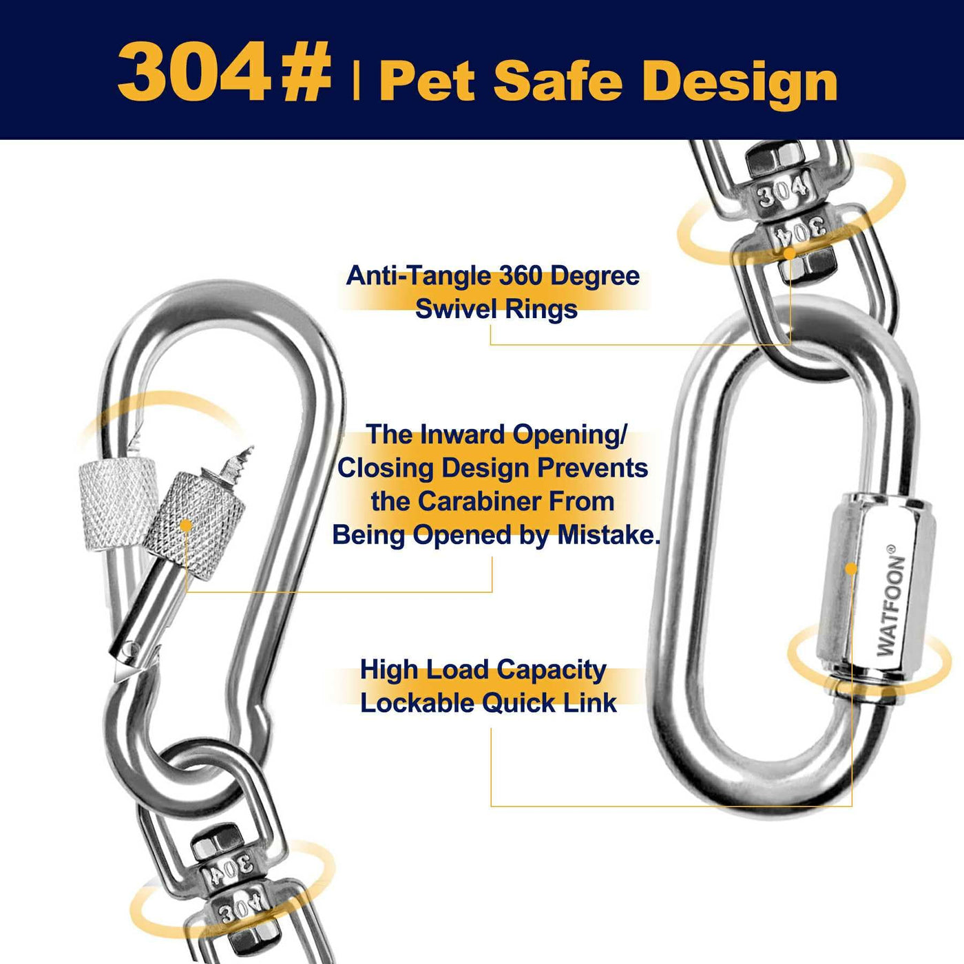 Building On The Success Of Our Previous Product, This Upgraded Dog Tie-Out Offers Superior Strength And Durability, Making It Suitable For Large And Extra-Large Breeds. With Stainless Steel Swivel Clasps At Both Ends, It Effectively Prevents Tangling And Twisting. The Cable'S Robust Construction Ensures It Can Withstand Even The Most Enthusiastic Chewers, Providing A Reliable And Long-Lasting Solution For Your Furry Companion. Measuring 30~100 Feet In Length, It Offers Ample Freedom For Your Dog To Explore While Maintaining Control During Walks Or Outdoor Adventures. Crafted With Premium Materials, This Cable Promises A Secure And Comfortable Grip, Ensuring A Pleasant Experience For Both You And Your Pet.