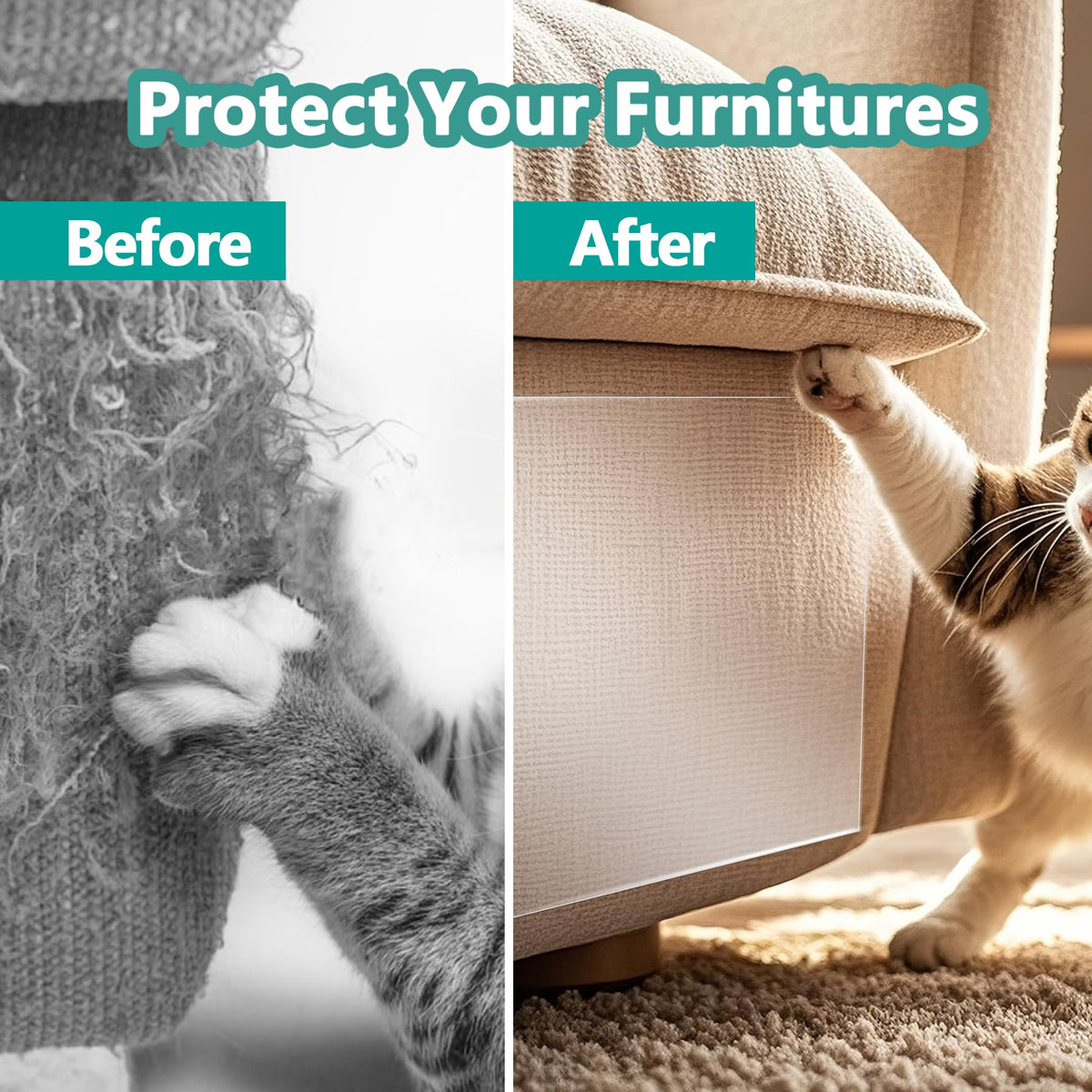 Wawiny Cat & Dog Scratch Protector 8-Pack (12''X16''/30X40Cm) - Clear Self-Adhesive Furniture Tape, Cut To Fit, No Residue Remov