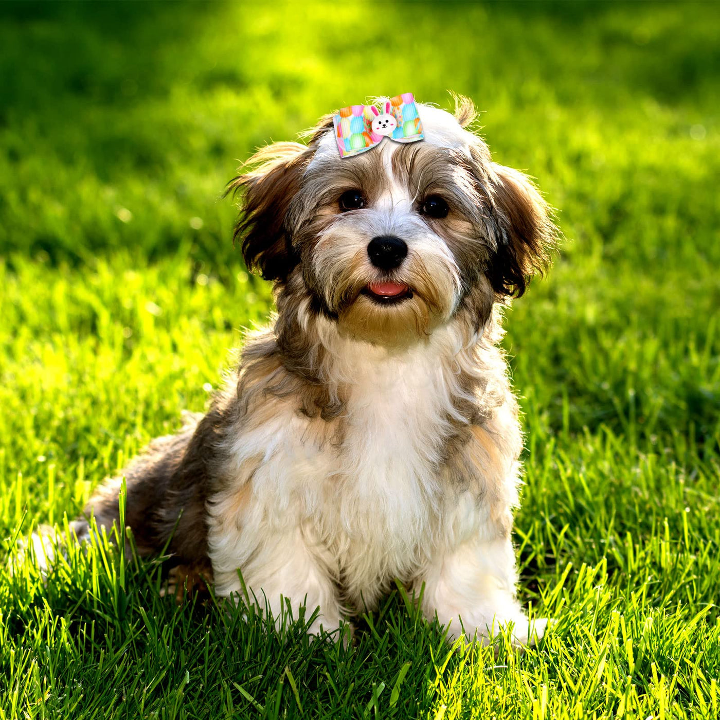 Features: Puppy Easter Hair Bowknots Are Made Of Nylon Fabric, Which Has Comfy And Smooth Hand Feelings, The Ornaments Can Add Cute And Fun To The Hair Bows, When Your Pet Wears, Will Not Cause A Burden To Your Pets' Heads. With Bright Colors And Various Patterns, Dog Easter Hair Accessories Can Be Applied To Match Your Dog Clothes To Make Them Like An Elegant Princess. You Also Can Send Them As Dog Birthday Gifts To Your Pets Or Other Friends Who Raise Pets At Home. Specifications: Size: As Shown In The Pictures Color: As Shown In The Pictures Material: Resin, Nylon Fabric, Rubber Package Includes: 40 X Easter Dog Hair Bows Note: Manual Measurement, Please Allow Slight Errors On Size. The Colors May Exist Slight Difference Due To Different Screens.