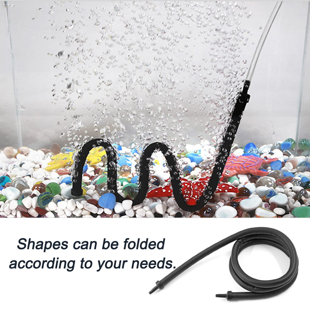 Q: What is the length of the bubble hose, and can it be bent into different shapes?A: The bubble hose measures 120cm or 48 inches in length and is made from flexible rubber, allowing it to be bent into various shapes to fit your aquarium design.
