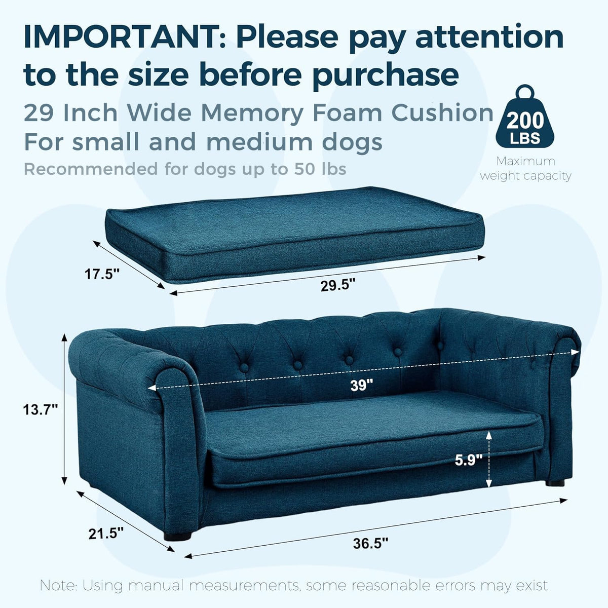 Wcfi 39 Dog Couch Bed With Legs, Durable Elevated Pet Couch With 29 W Memory Foam, Dry Cleanable Fabric, Dog Sofa Bed For La