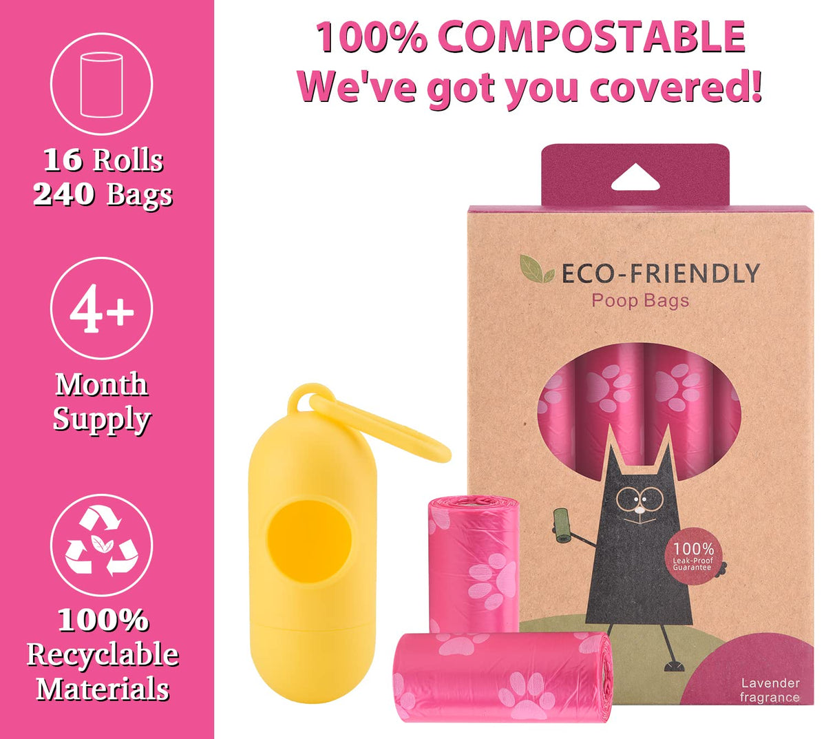 Wdfaack Biodegradable Dog Poo Bags With Holder-240 Large Poop Bags, Corn Starch Blended Compostable Bag, Extra Thick Strong Leak
