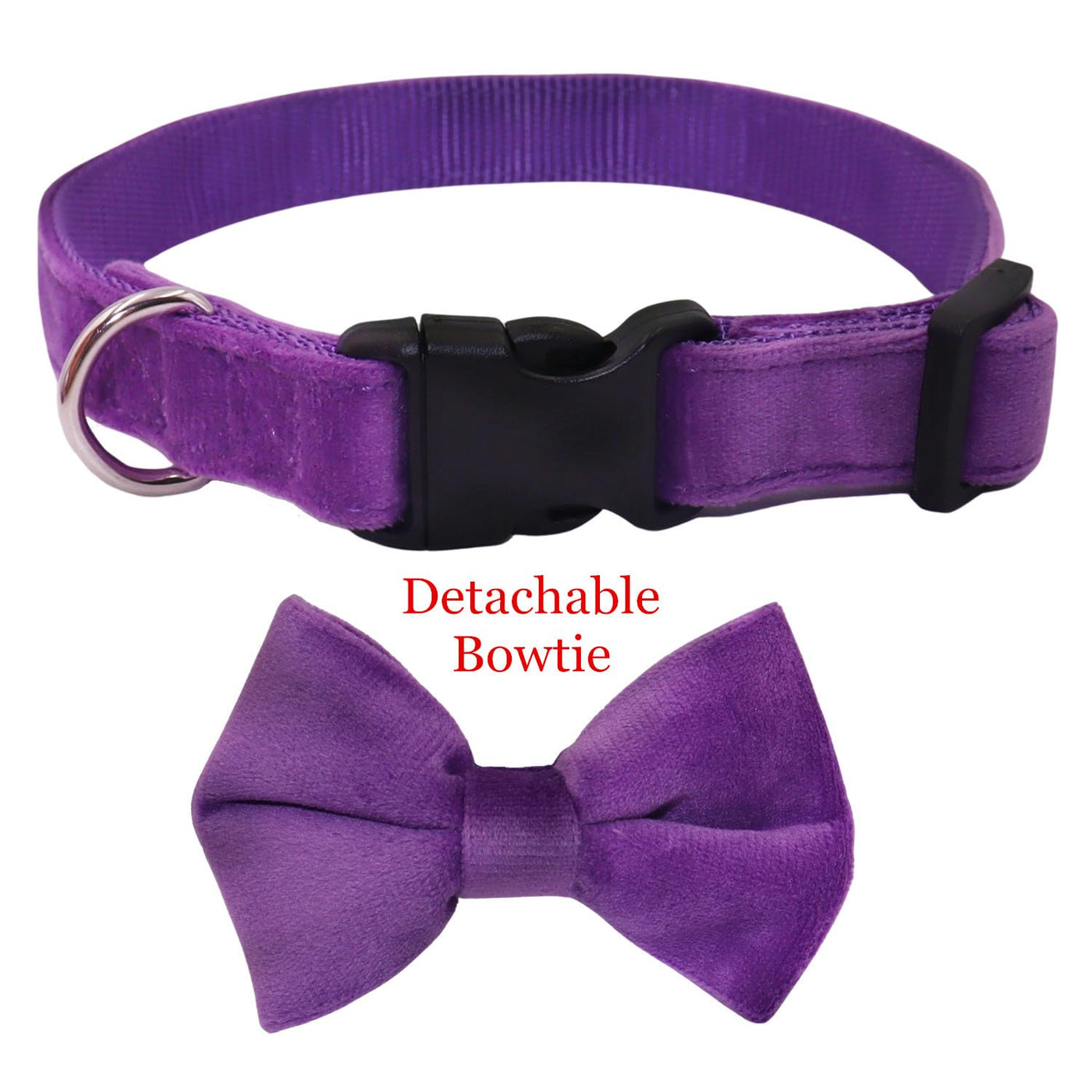 Wdpaws Dog Collar With Bowtie Soft Velvet Material With Quick Release Buckle For Large Dogs (Purple, L)