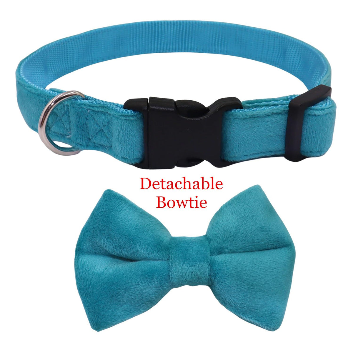 Wdpaws Dog Collar With Bowtie Soft Velvet Material With Quick Release Buckle For Medium Dogs (Blue, M)