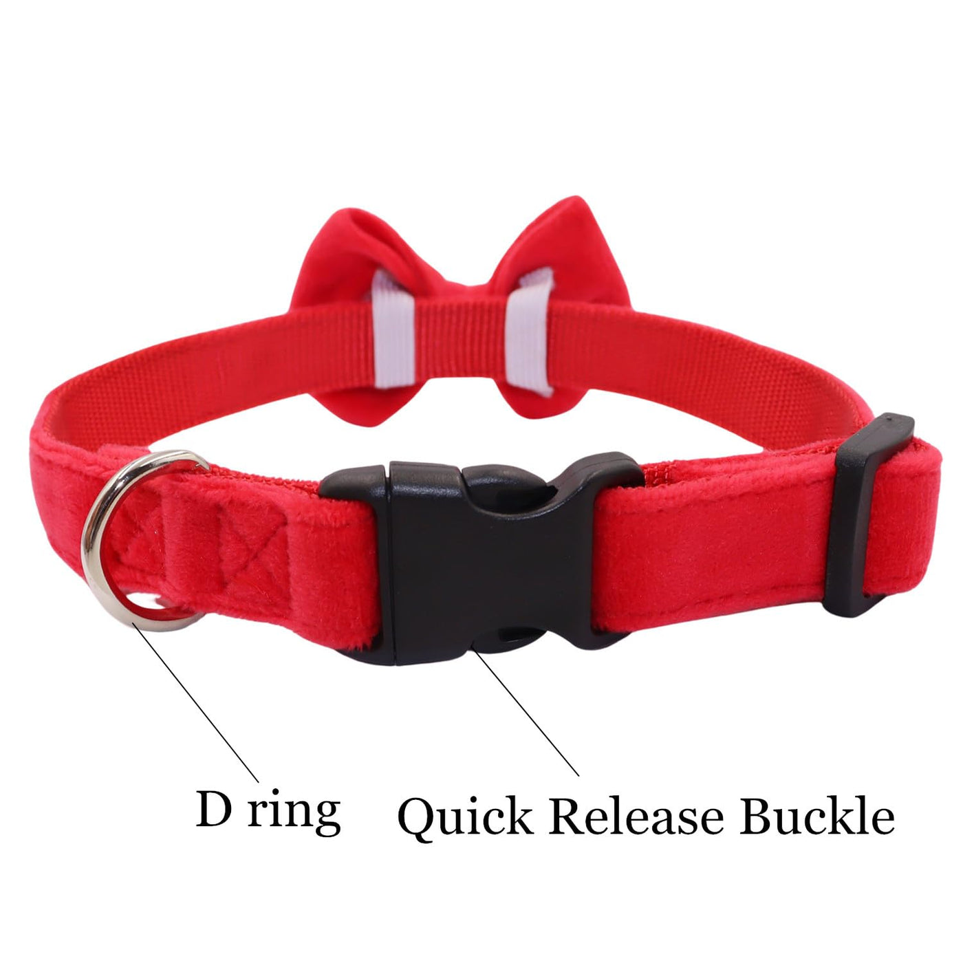 Wdpaws Dog Collar With Bowtie Soft Velvet Material With Quick Release Buckle For Small Dogs (Red, S)