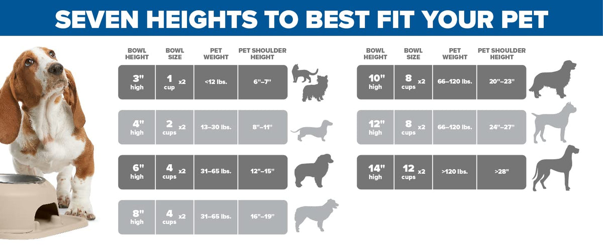 Weathertech Double High Pet Feeding System - Elevated Dog/Cat Bowls - 6 Inch High Light Grey (Dhc3206Lglg)