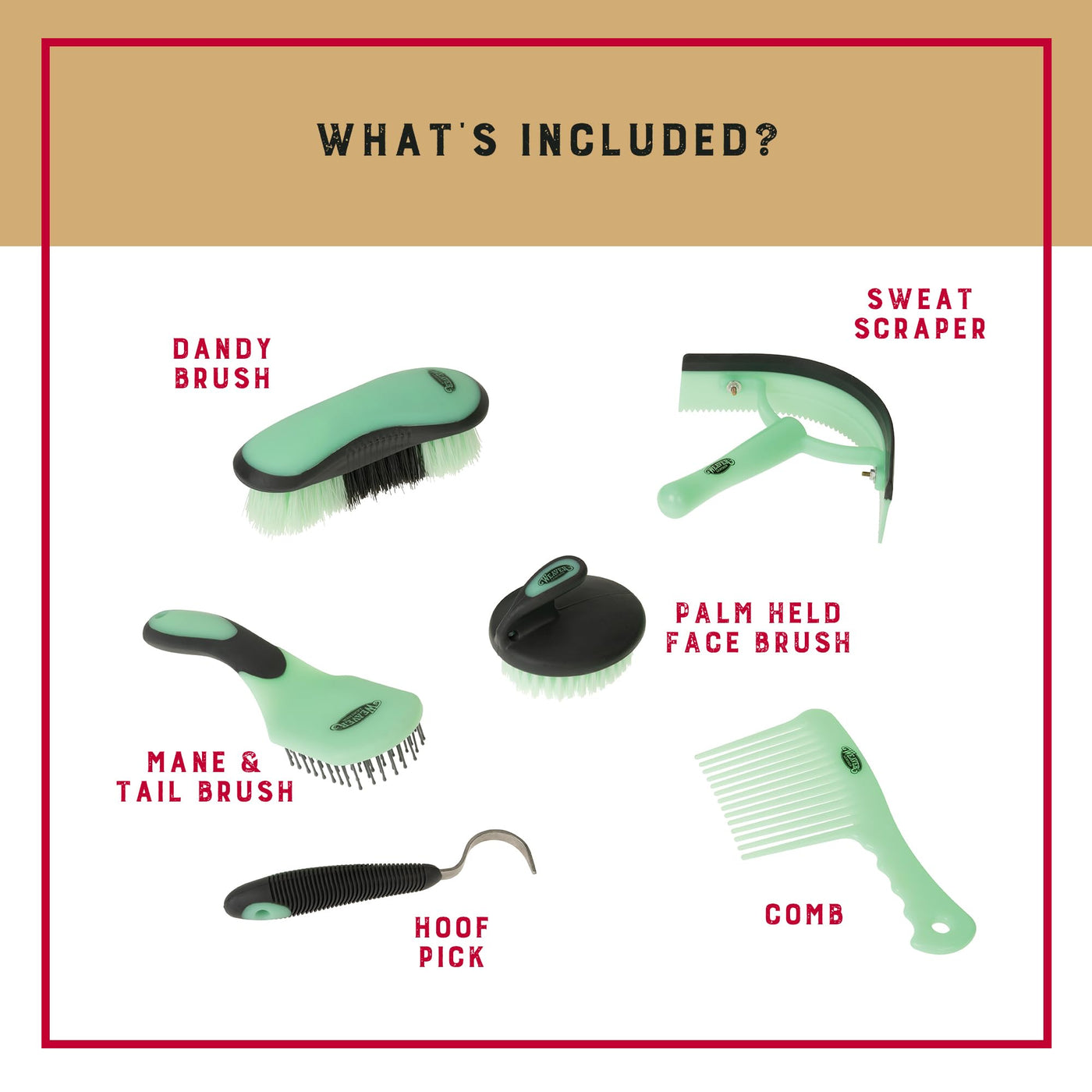 Weaver Equine 6-Piece Horse Grooming Kit, Ergonomic Gentle Horse Care Kit, Equestrian Supplies for Bathing Support, Detangling,
