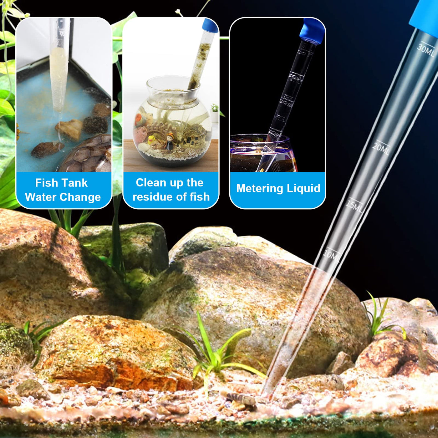 Product Specification: Made Of Premium Material For Practical Use. Easy To Use, And It Doesn'T Bother The Little Fish. Material: Silicon+ Ps Color: Blue Length: Approx 28.5Cm Length Scale: 10Ml/ 15Ml/ 20Ml/30Ml Uses: Changing Water, Sucking, Feeding Application: Aquarium Suction Cleaning, Small Fish Tank Changing Water Product Features: It Is A Pipette Dropper.Help To Keep Your Fish Tank Clean. Can Effectively Remove Small Garbage And Make Your Aquarium Cleaner. Helps Provide Your Betta With A Fresh Environment To Live In. Suitable For Chemical Use Dropper Or Pipette Water Changer Or Fish Tank Cleaning. Also Use To Directly Feed Coral Or Anemones. Perfect For Stirring Up Waste In The Bottom Of The Tank And Sucking It Up. Package Includes: 1 X Aquarium Cleaning Straw Sweet Tips: 1.Please Allow A Little Size Error Due To Hand Measure. 2.Color May Be A Little Different Due To Monitor And Light Brightness From Pictures. Thank You For Your Understanding.