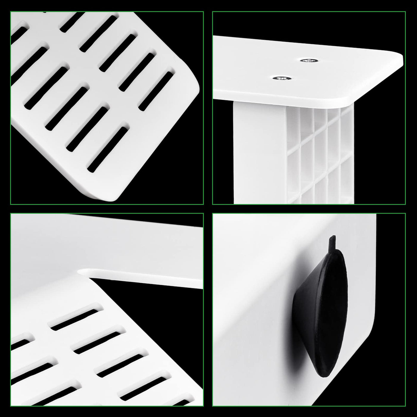 Q: What should I do if the suction cups lose their grip?A: If the suction cups lose their grip, it may be due to dust or debris. Cleaning the suction cups can help restore their suction power and ensure the platform stays securely in place.