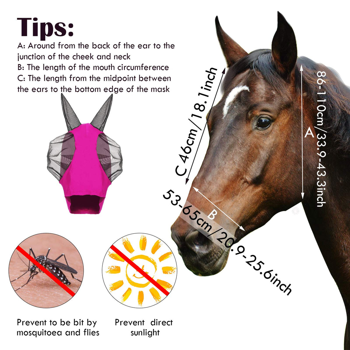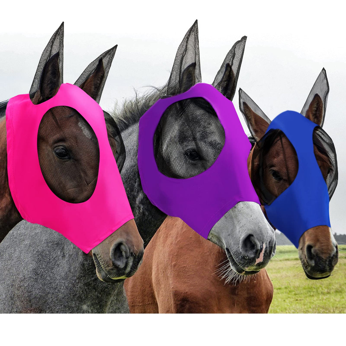Weewooday 3 Pcs Horse Fly Masks for Horses Fly Masks with Ears Smooth and Elasticity Fly Mask with UV Protection
