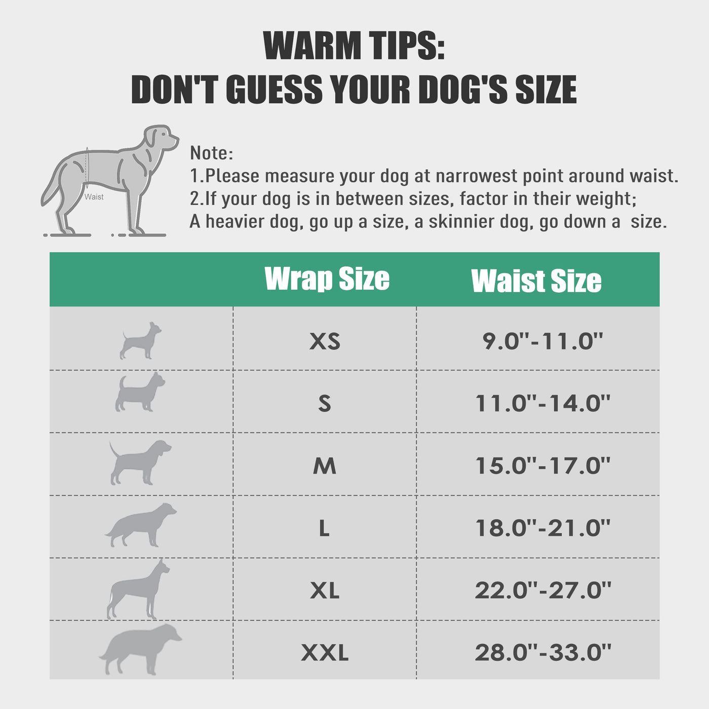 Q: What sizes are available for the wegreeco Washable Male Dog Diapers?A: The wegreeco Washable Male Dog Diapers are available in XX-Large, which fits waist sizes from 28" to 33". This adjustable design accommodates your dog's changing size.