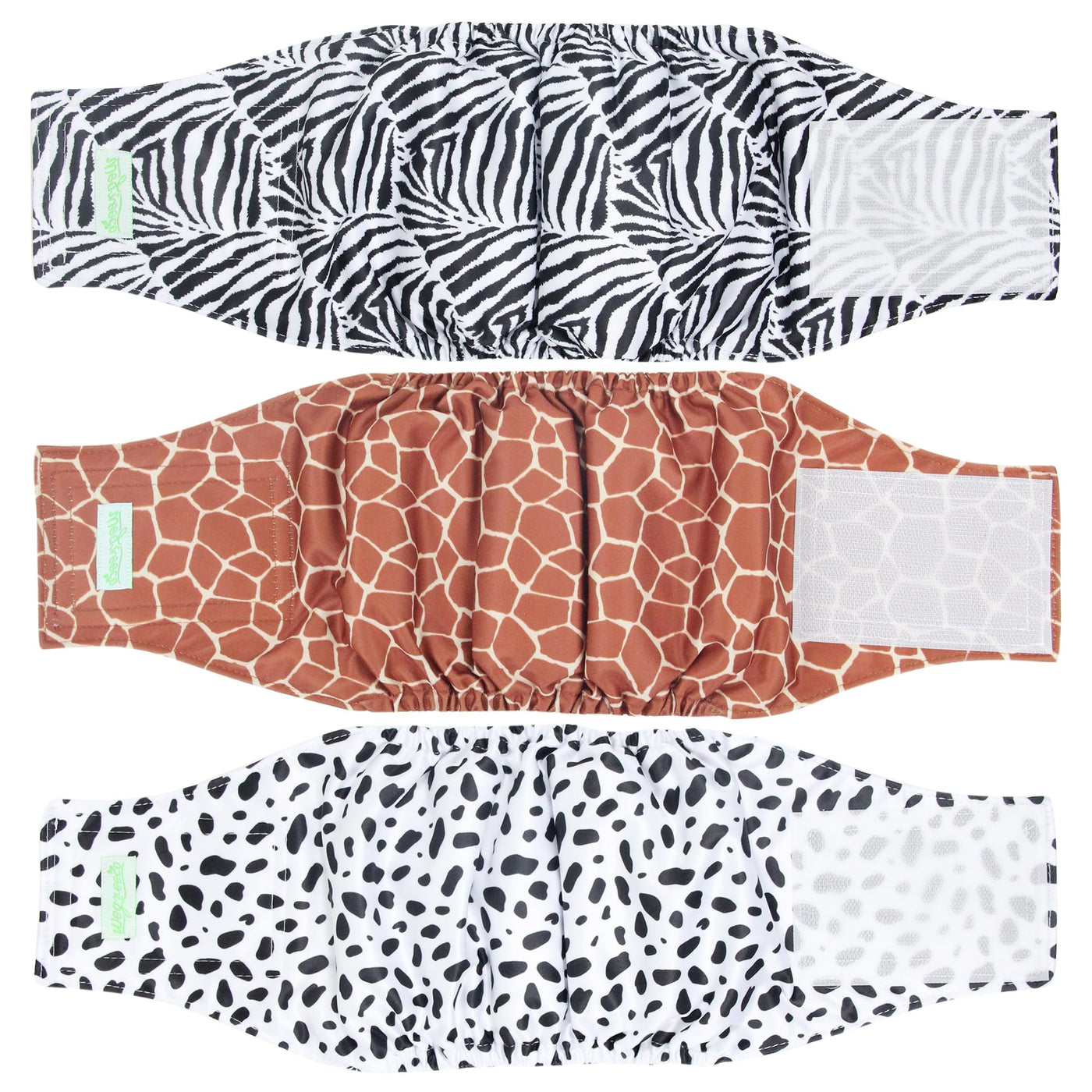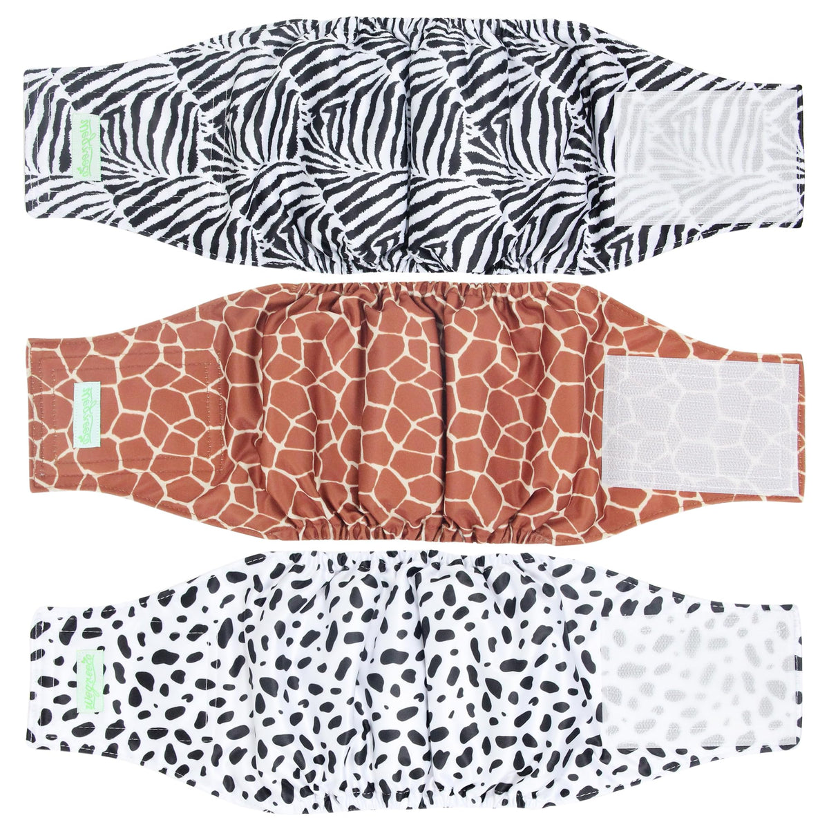 Wegreeco Washable Male Dog Belly Band (Stylish Pattern) - Pack Of 3 - Washable Male Dog Belly Wrap, Dog Diapers Male (Zebra, Giraffe, Spotty, S)