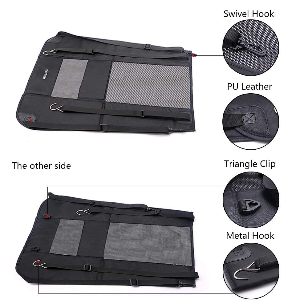 Main Features 1.Keep pets and kids stayed at the backseat without disturbing the driver to ensure the driving safety and protect the pets from accidental fall to the front seat during quick stops; 2.Quick to be installed with 4 hooks and easy to be folded for portability; 3.Featured in mesh windows to give a comfortable inside temperature and have an eye contact with your pets making them feel at ease throughout the journey; 4.Have 4 clips to adjust the strap for proper fit for cars, SUVs and trucks;