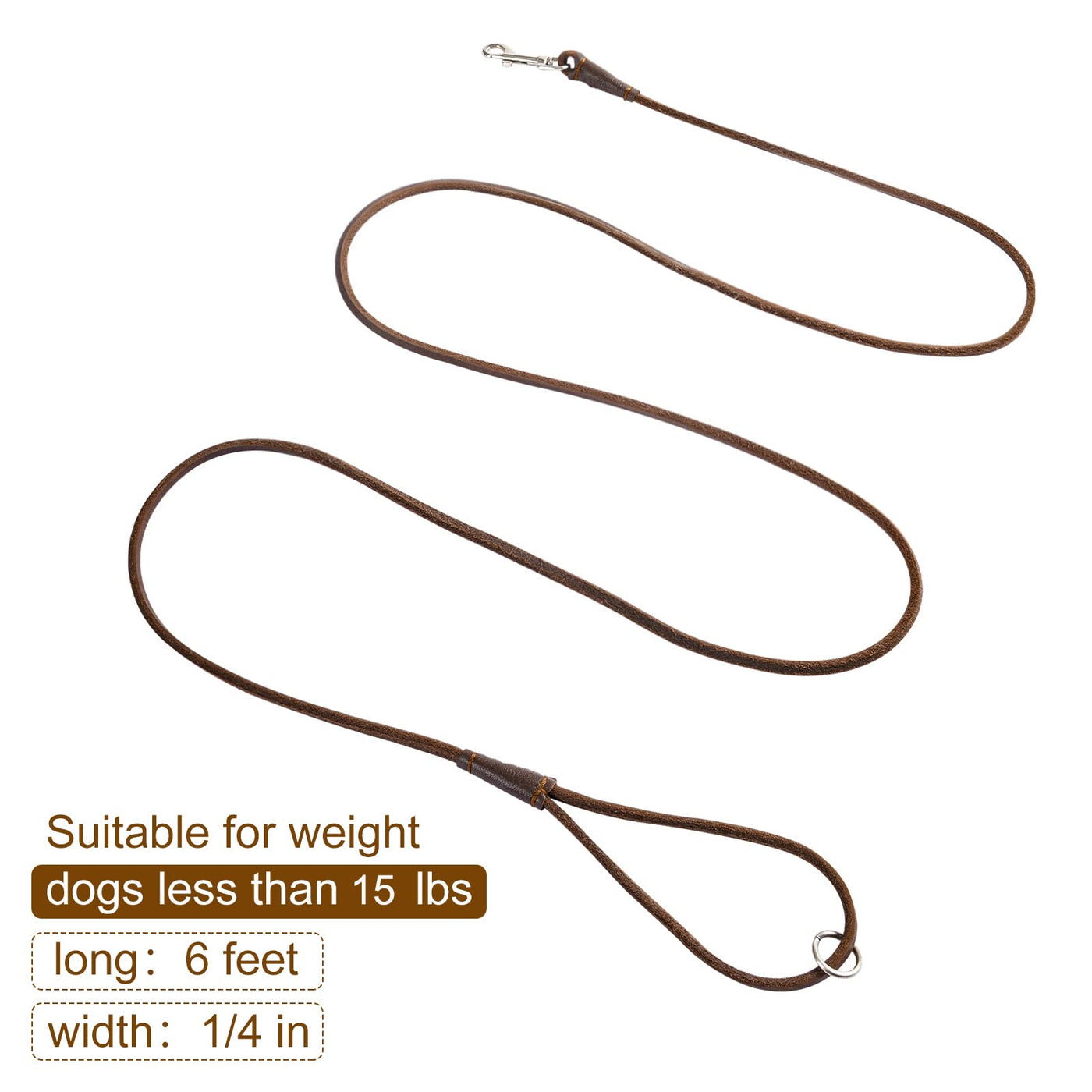 Super Thin Leather Leash: Measures 6ft long by 1/4'' wide and recommended for small dogs puppies and non-pullers less than 15lb only like Yorkshire Terrier Pomeranian Teddy etc..