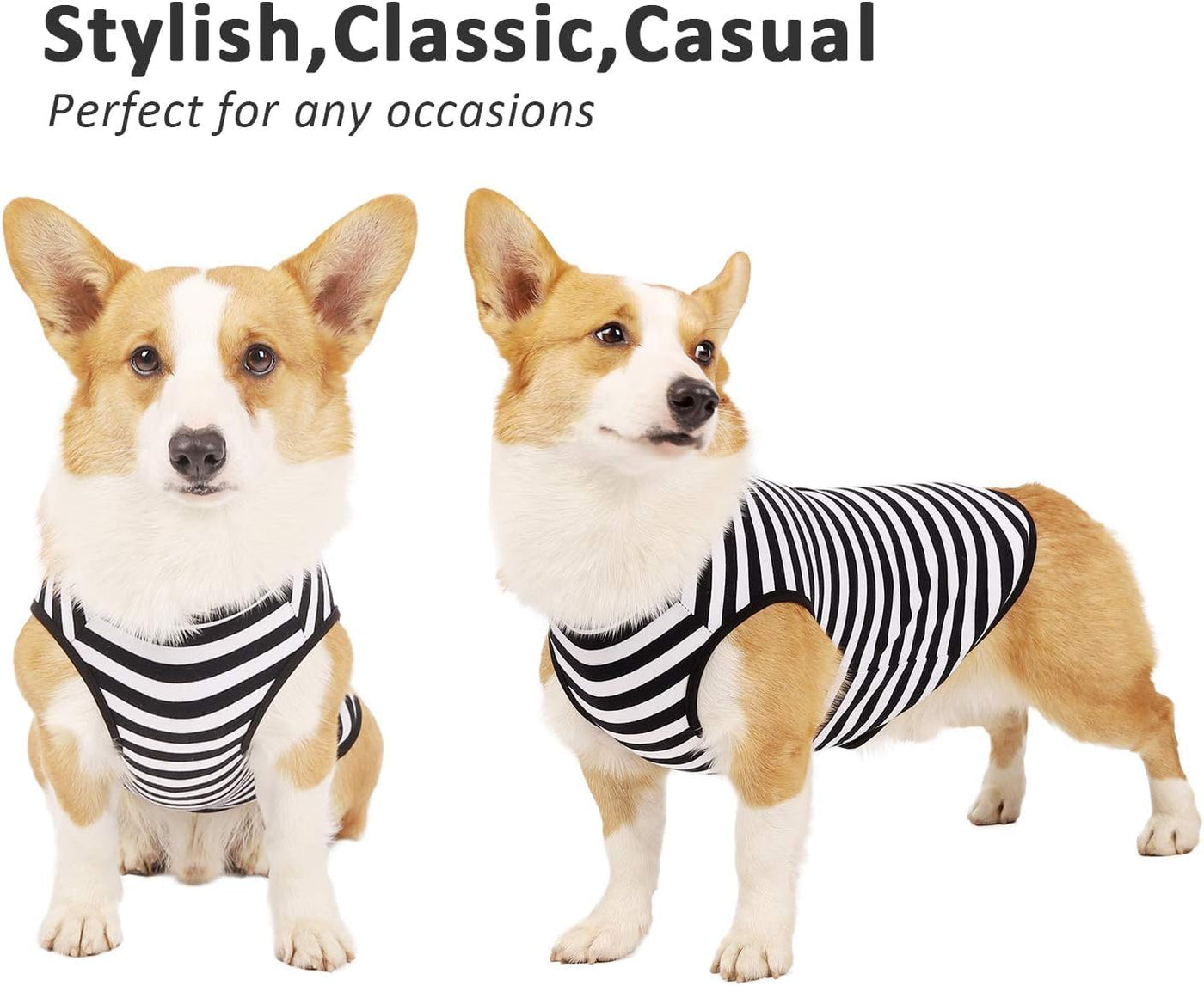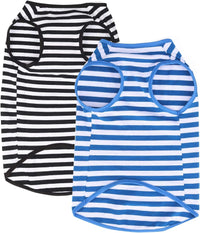 Comfortable And Fashionable Dog Striped Shirts Make Dogs More Attractive As Well As To Some Extent Protect Them. T-Shirt Material Is Combined With 95% Cotton And 5% Polyester,This Material Will Prevent Your Pet From Gettingtoo Warm In The Summer,Material Is Elastic And Won'S Tight Your Puppy,No Shrink After Machine-Wash And Drying. Cotton Fabric Has Better Heat Resistance, Breathability And Hygroscopicity, Soft To Touch Which Can Bring Best Wearing Experience. Package Include: 2 Pieces Of Dog Striped T-Shirts,Size M,Black-White+Bule-White Striped