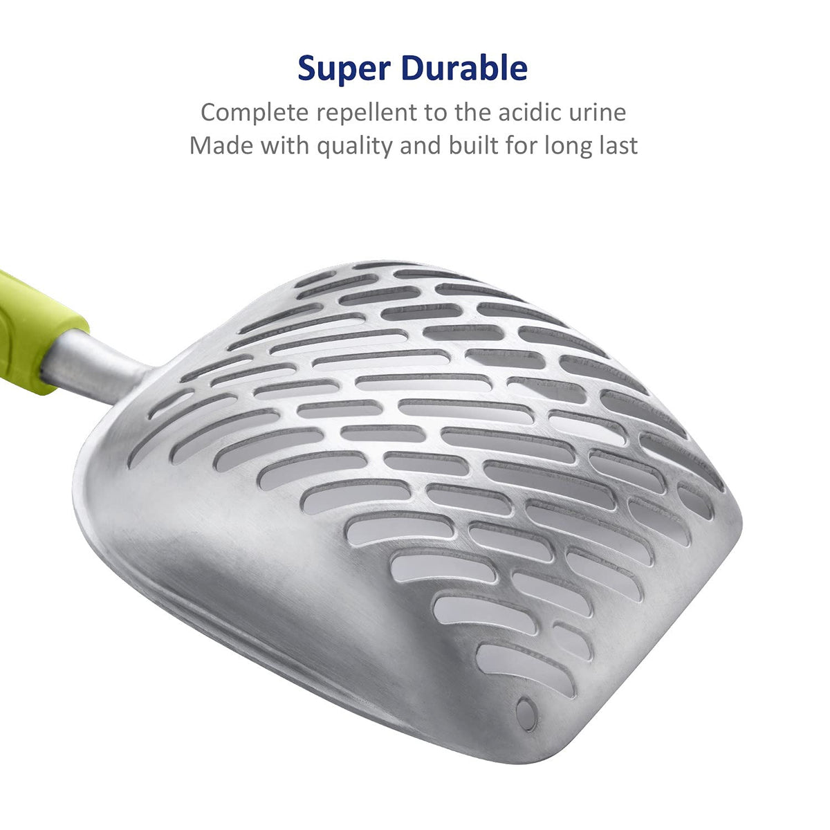 [Comfortable Handle]: WePet scooper made with reinforced rubber, the hardened ergonomic grip, which is comfortable to use and long last. The handle offering you a more comfortable touch and allowing shoveling and sifting the cat litter so smooth and within a simple shake.