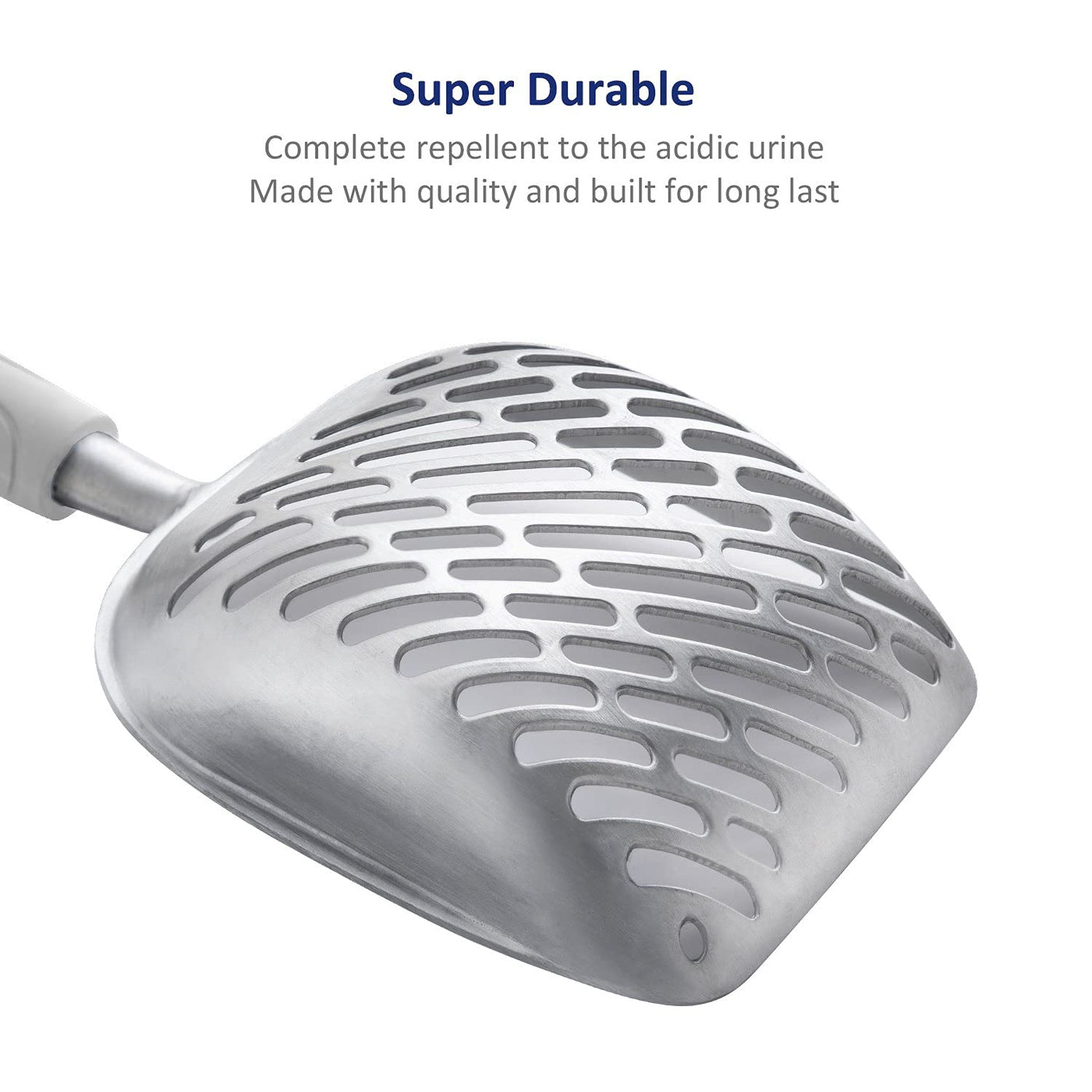 [Comfortable Handle]: WePet scooper made with reinforced rubber, the hardened ergonomic grip, which is comfortable to use and long last. The handle offering you a more comfortable touch and allowing shoveling and sifting the cat litter so smooth and within a simple shake.