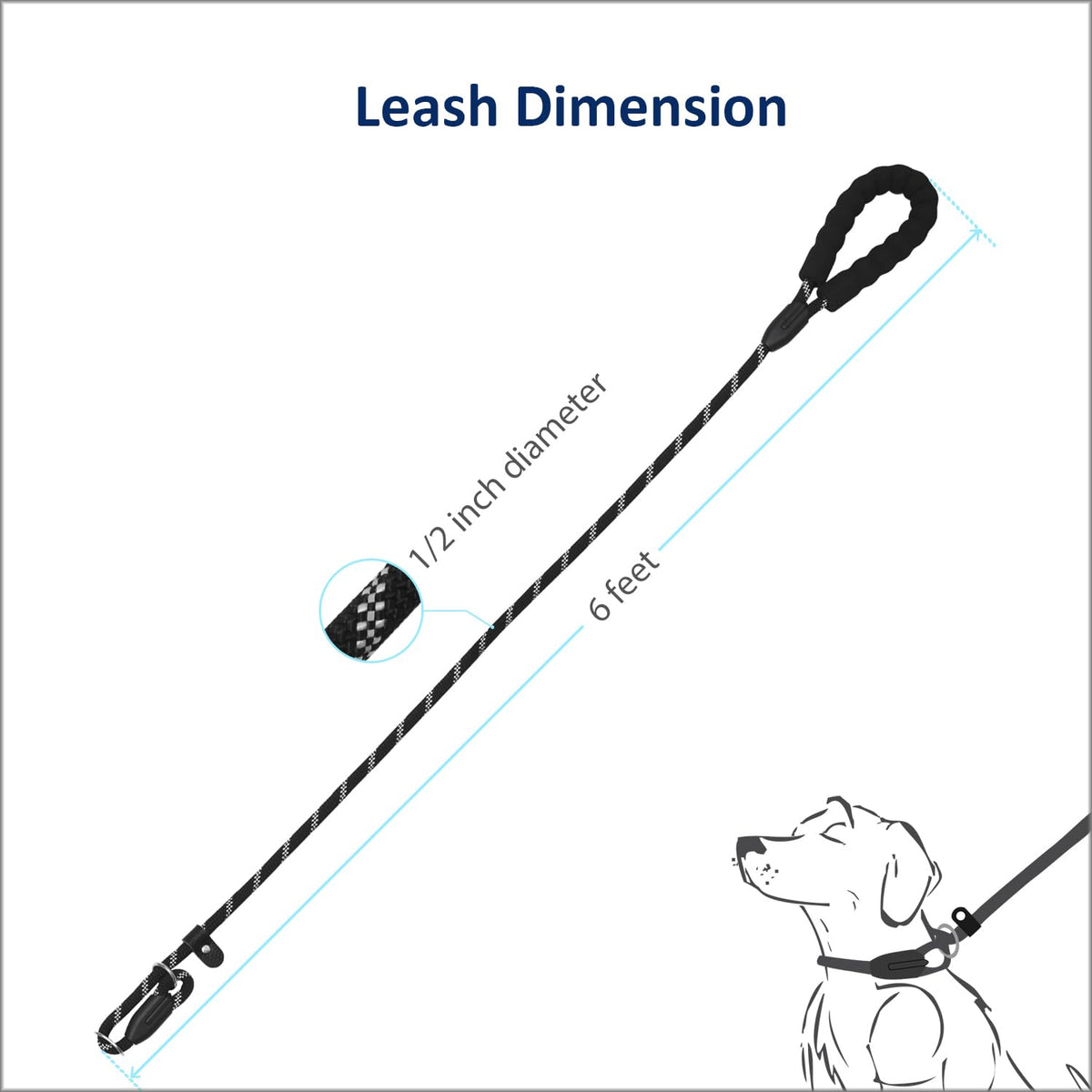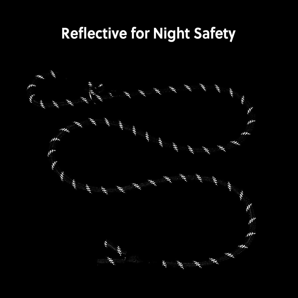 Q: How does the reflective feature enhance safety during walks?A: The leash includes highly reflective threads that increase visibility during nighttime walks, making it safer for both you and your dog on poorly lit roads.