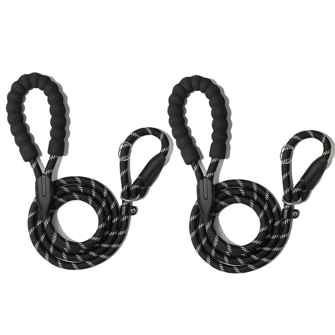 Wepet Durable Dog Leash For Medium Large Dogs, Sturdy And Premium Quality Reflective Leashes, Supports Strong Pulling, Comfortable Padded Handle, 6 Feet Slip Rope Lead For Walking And Training, 2 Pack