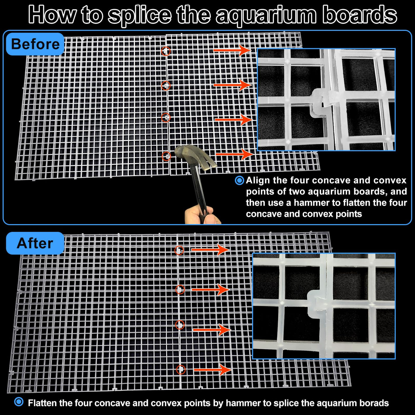 ?Novel adjustable design?Our aquarium panels can be assembled together through concave convex buckles and can be cut into the shape and size you want by scissors for your aquarium's needs.