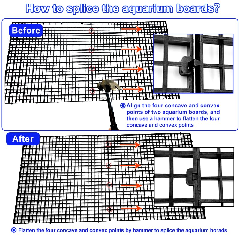 ?Novel adjustable design?Our aquarium panels can be assembled together through concave convex buckles and can be cut into the shape and size you want by scissors for your aquarium's needs.