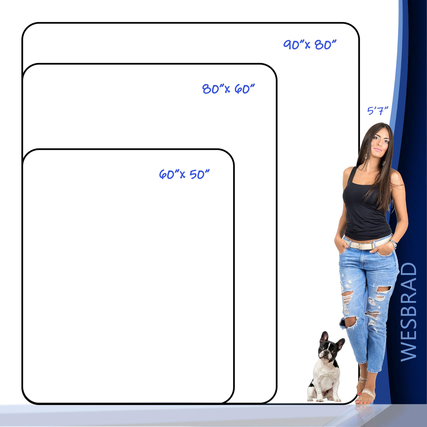 Q: What sizes and colors are available for the WESBRAD blanket?A: The WESBRAD blanket is available in three sizes: Queen-King (90"x80"), Large (80"x60"), and Small (60"x50"). It also comes in two reversible color options: Slate Grey and Cool Grey.